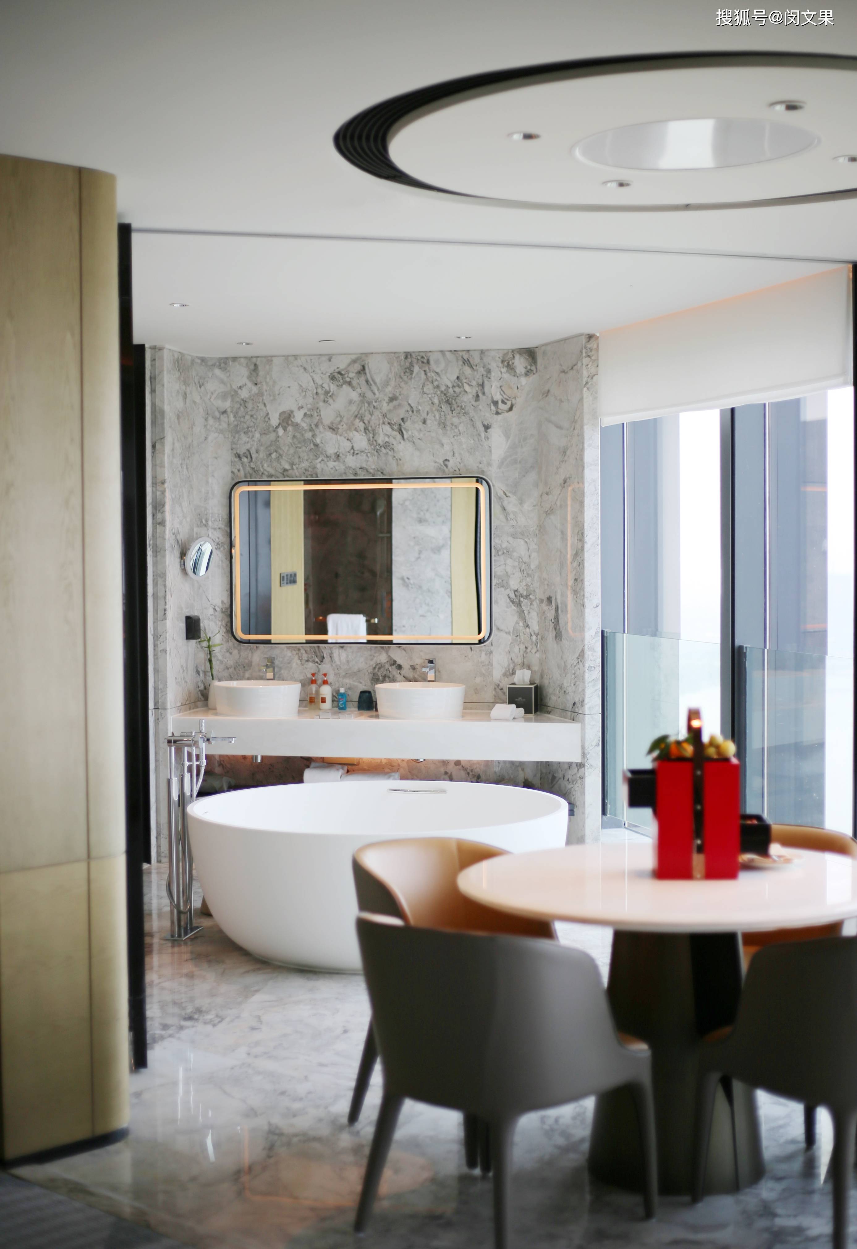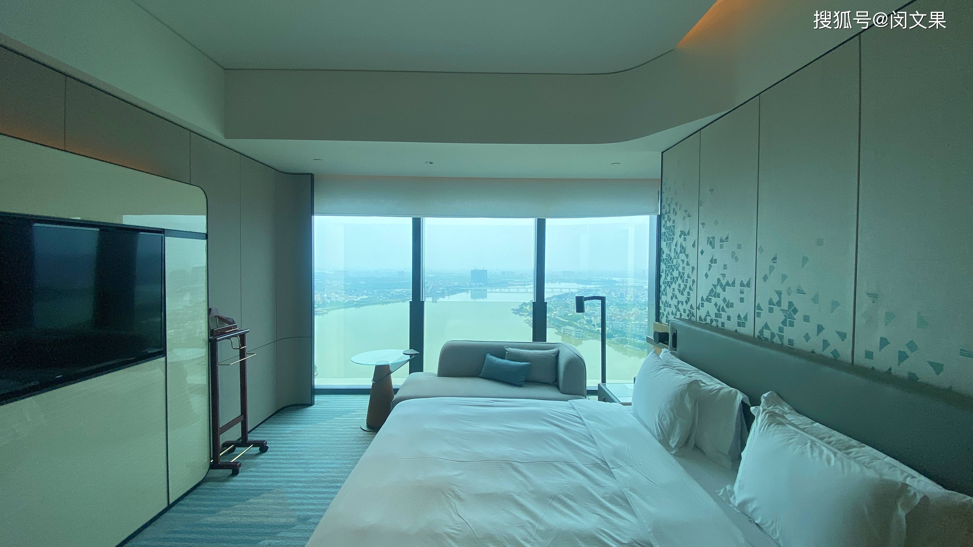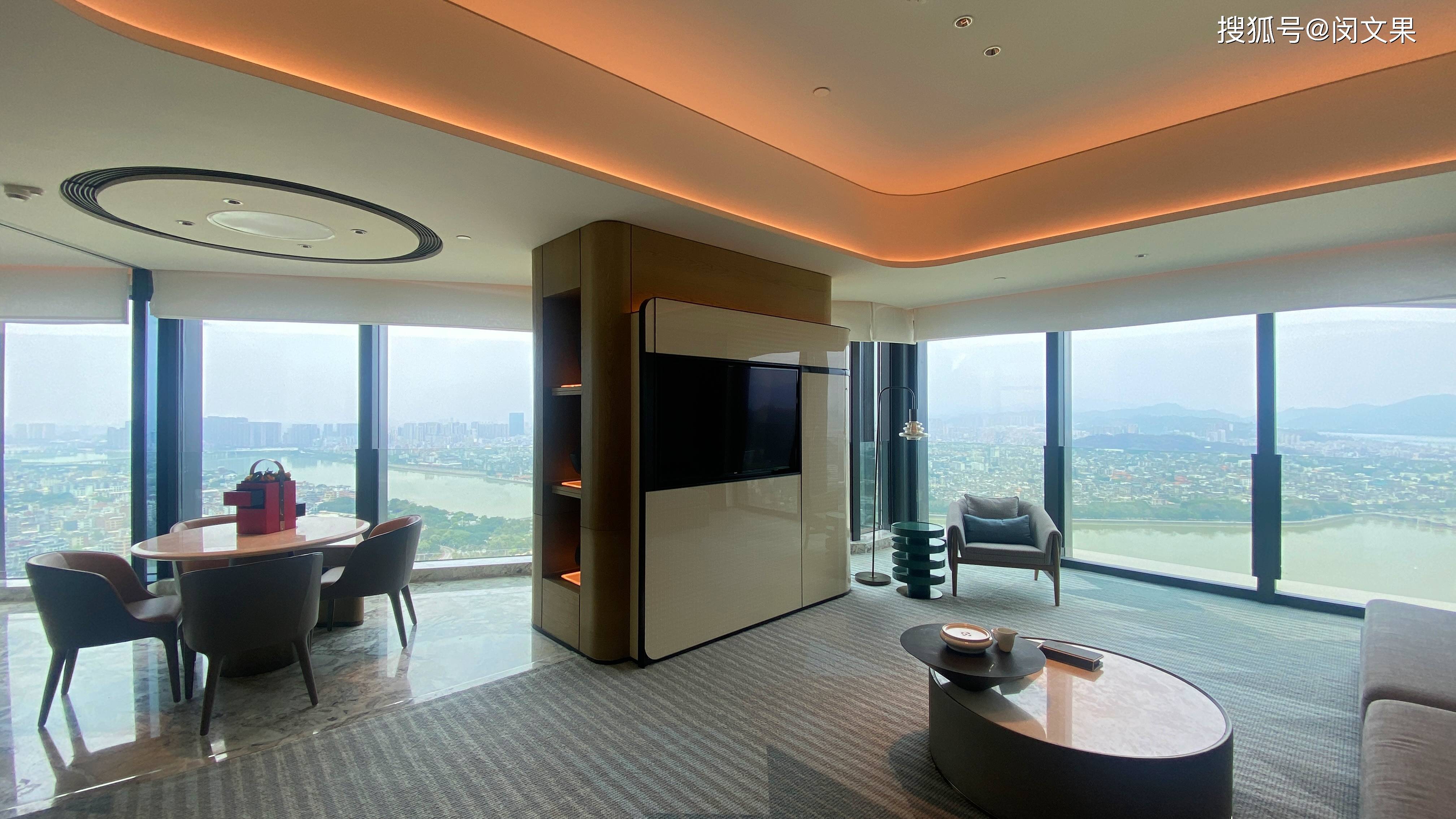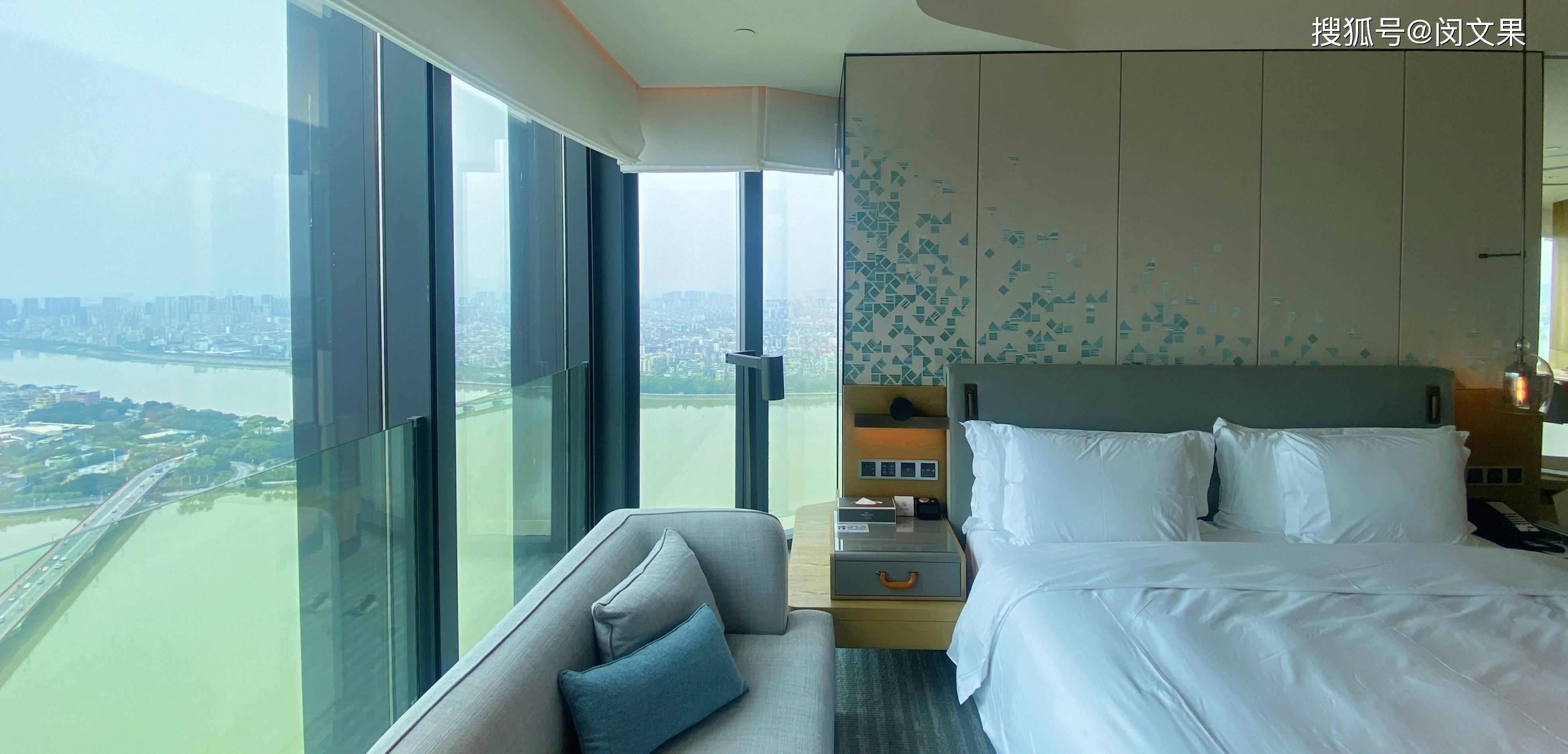 酒店拥有280间摩登雅致的客房及套房,拥有山景、江景、广济桥景在内的不同房型,基础房面积42平起。这次在潮州的探访之旅,入住了面积达108平的大使套房,开放式自由布局,客厅与浴室空间连为一体,将韩江、广济桥景致尽收眼底。