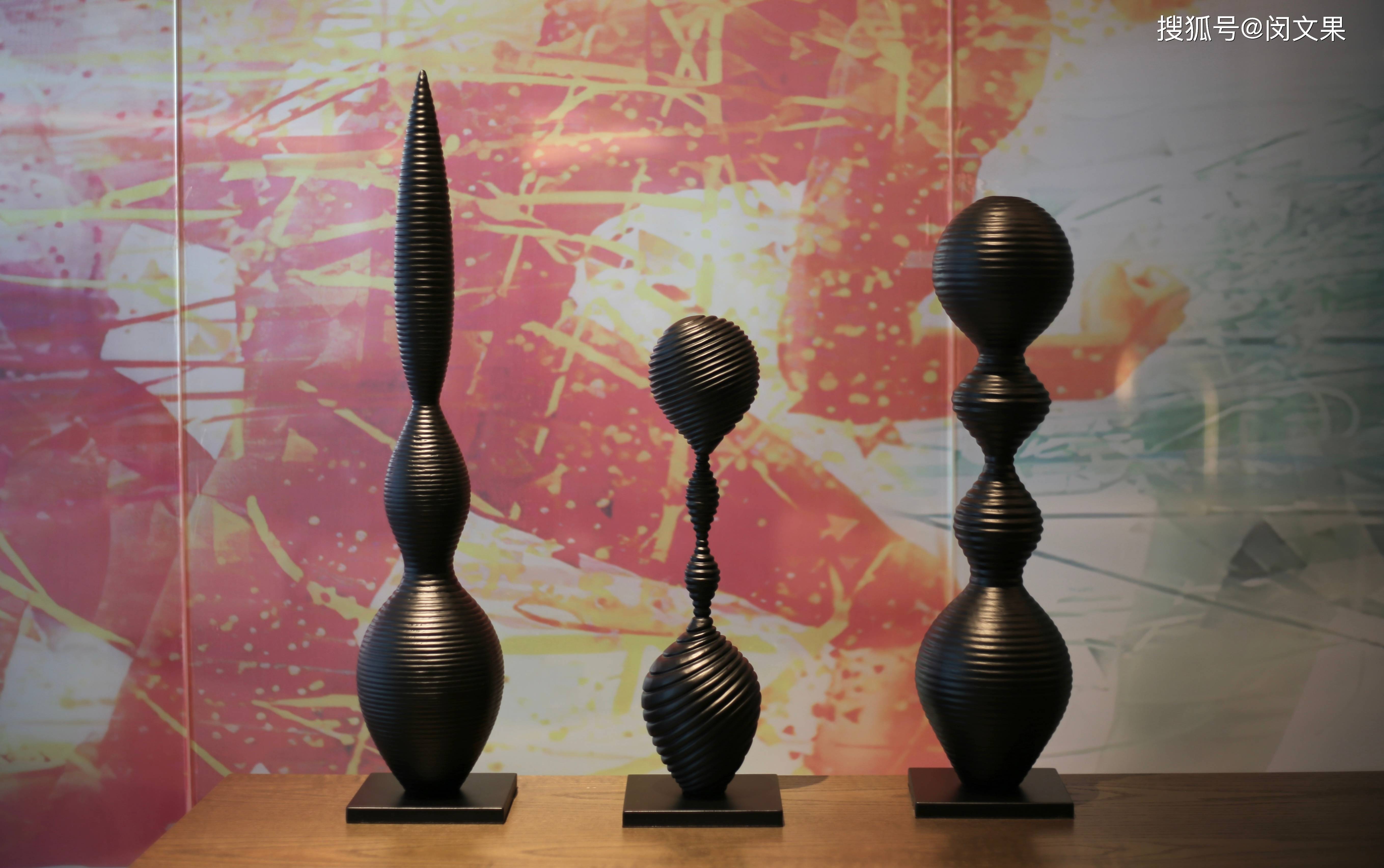在酒店大堂、餐厅等空间,可以看到潮州嵌瓷工艺、木雕、戏曲、建筑剪影、韩江水等元素的点缀,潮州文化氛围扑面而来。如电梯入口处墙壁上的嵌瓷,被剪裁成美好寓意的云,磁盘手绘流淌的韩江水;大堂宴会梯厅旁陈列的潮州木雕,雕刻的主题是广济桥的传说故事“仙佛造桥;全日制餐厅“潮江楼”的墙面木雕,手工雕刻的是潮汕地区名小吃红桃粿、圆粿,呼应餐厅食味。中餐厅“韩江潮”摆放的黄包车,则仿佛能看到潮州古城师傅们载着游客满街穿梭的情景。