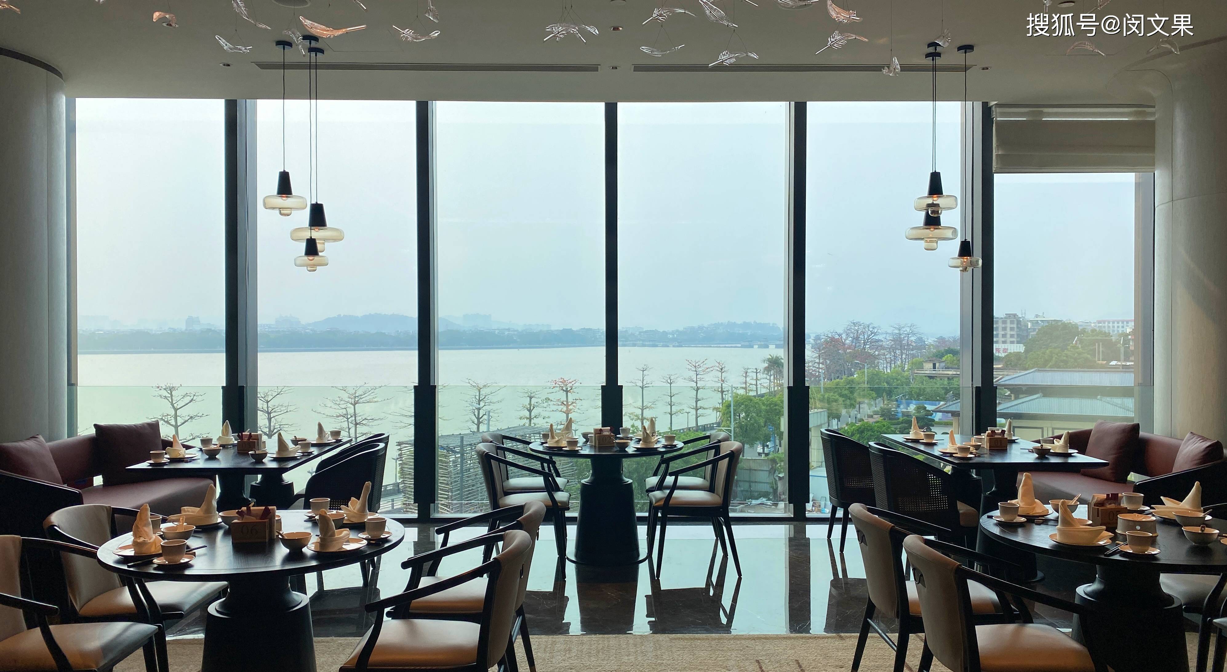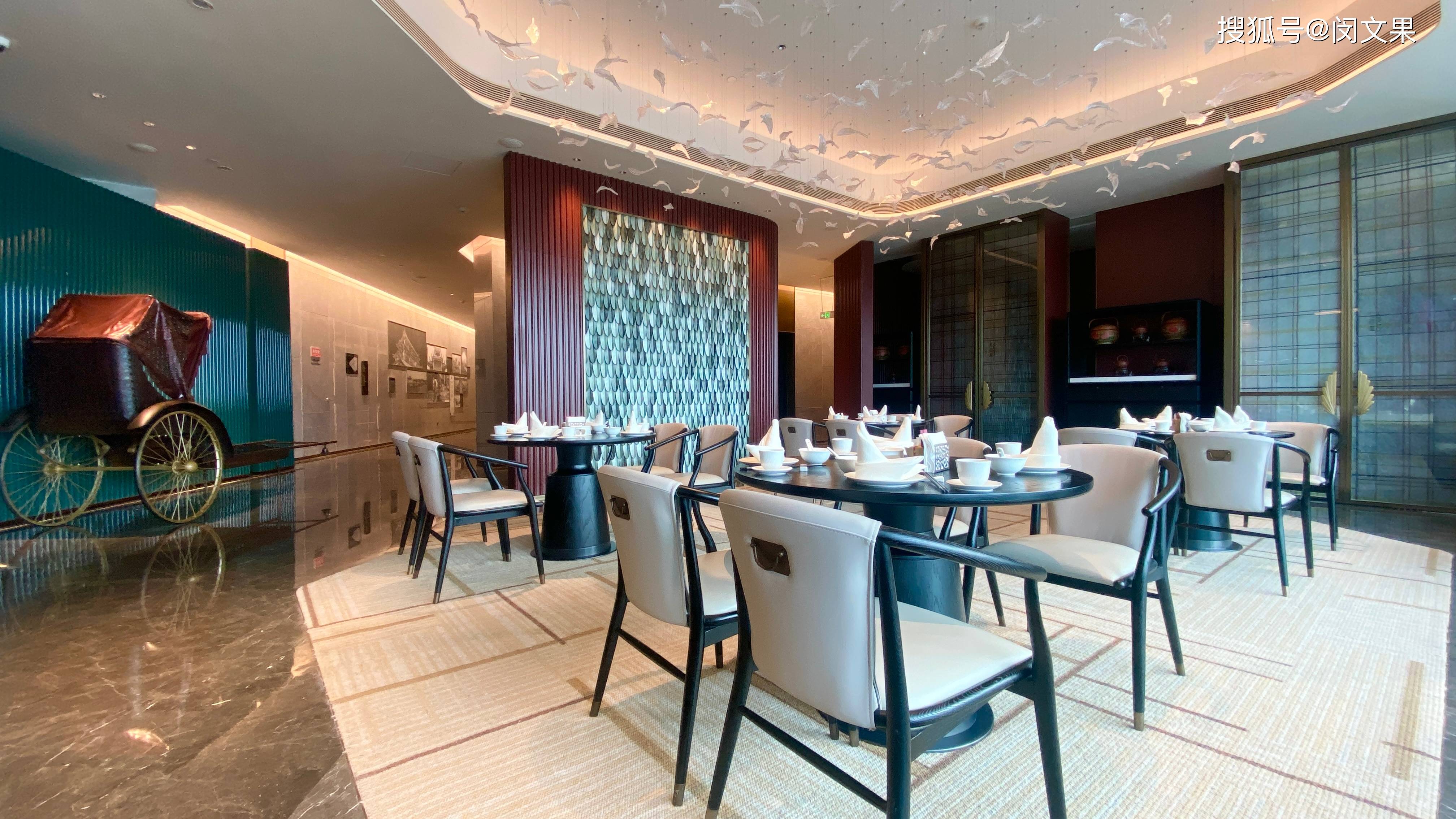 与大堂连为一体的大堂吧,则是可以偷得浮生半日闲的场所,光与影以及琉璃结合在一楼大厅,给人以大隐隐于市的美感。咖啡茶饮之外,也会根据潮州本地特色推出潮州下午茶,每季还会有不同主题的下午茶更新。