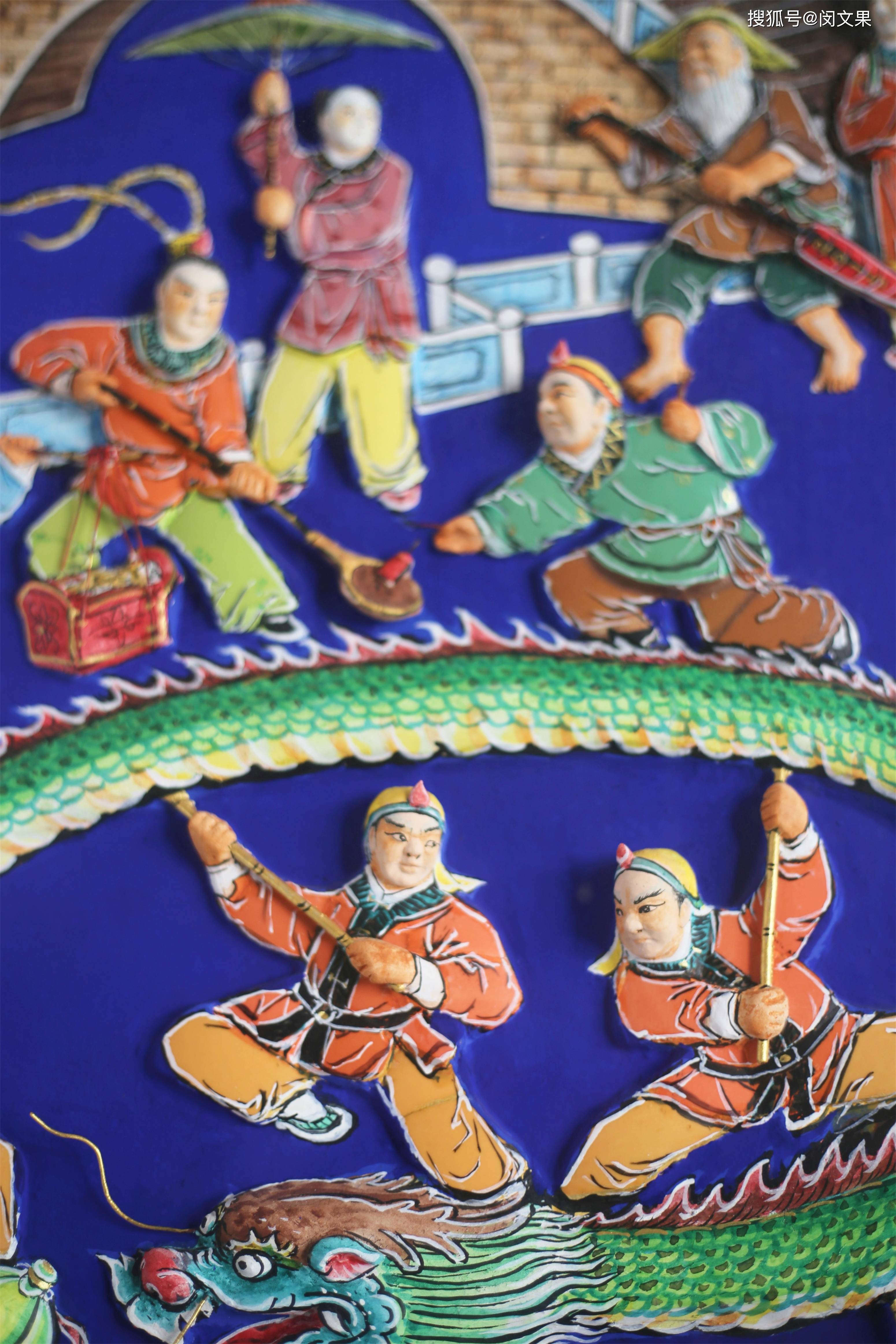除此之外,我还特意去参观了潮州嵌瓷博物馆,主人是国家级非物质文化遗产(潮州嵌瓷)代表性传承人卢芝高。作为潮汕地区特有的民间工艺,嵌瓷迄今已有300多年历史。在潮汕地区旅行时,常常能看到传统民居或古建筑的屋脊、墙体上有瓷器装饰物,就是嵌瓷。嵌瓷分为平嵌、浮嵌、立体嵌三种类型,立体嵌难度最高,主题有表现民俗、民间故事或祥瑞喜庆。简单来讲,嵌瓷作品都是由瓷器废品重制而成,要经过塑胚胎、剪饶、贴饶、综合调整等过程,很不简单。潮州嵌瓷博物馆里收集的作品,全部是手工制作的嵌瓷,除收藏展示之外,博物馆还兼传承功能,里面有嵌瓷艺人现场制作作品。