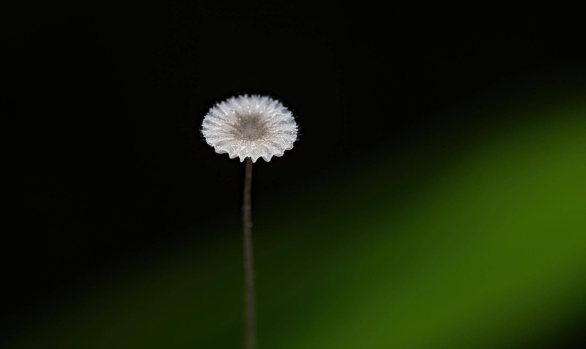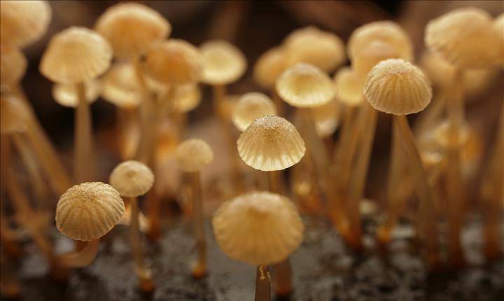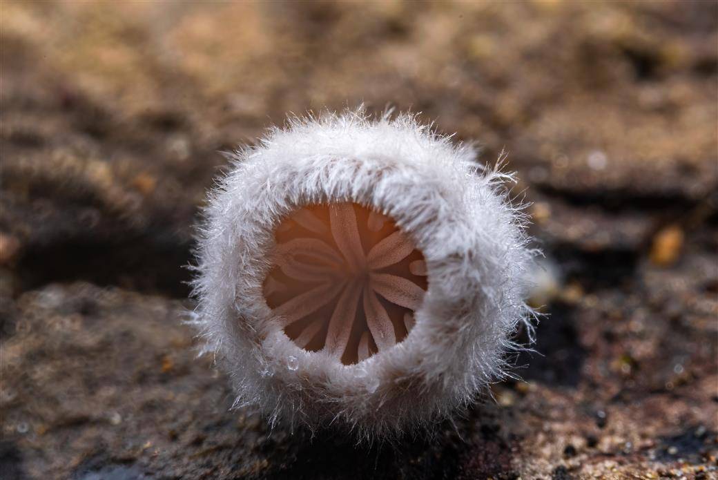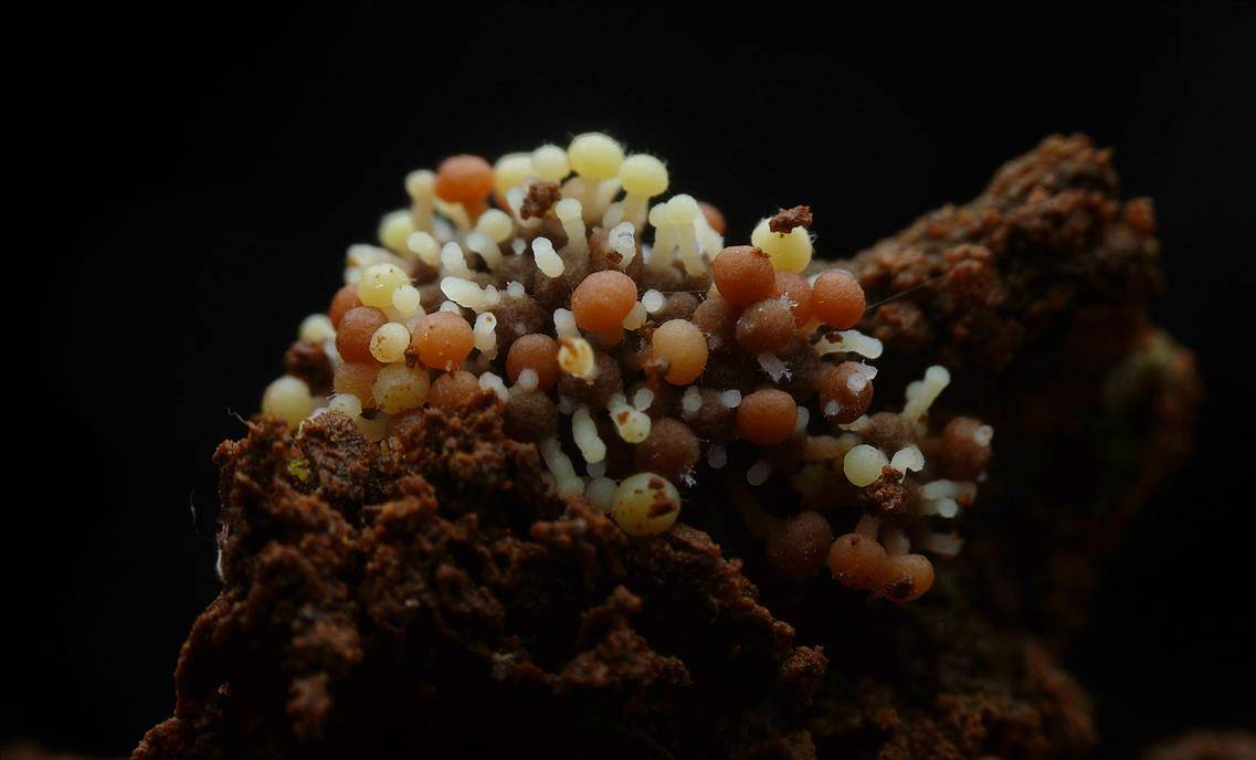 菌类是个庞大的家族,目前已知的大约有12万余种,它们是一大类不含叶绿素、不能进行光合作用的异养生物。它们没有根、茎、叶的分化,只能通过腐生或寄生的方式进行异养生活。通常来说,菌类可分为细菌门、粘菌门和真菌门三类彼此并无亲缘关系的生物。其中,粘菌是最为特殊的一类,它是介于动物和真菌之间的生物,在营养期为裸露的、无细胞壁、多核的原生质团,但在繁殖期,它可产生具纤维素细胞壁的孢子,又具真菌的性状。而摄影师所要寻找的,就是这些肉眼几乎看不见的粘菌。