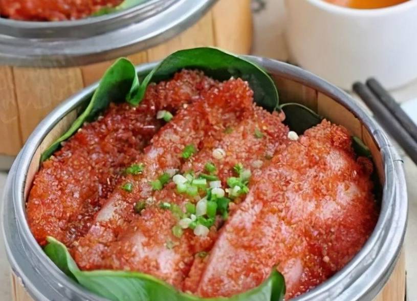 推荐理由:沔阳三蒸又名沔阳粉蒸,即蒸肉、蒸鱼、蒸菜(可随意选择青菜、苋菜、芋头、豆角、南瓜、萝卜、同蒿、藕等数十种)。做法是取猪肉1千克(按口味选择肥瘦)切成长约3厘米,宽约2厘米,厚3毫米的片,放入器皿内加盐,酱油少许,红腐乳汁,姜末,白酒少许,胡椒粉、味精伴匀腌渍约10—15分钟。然后用10克大米粉裹匀后一片片摆入垛笼内,加盖用旺火蒸约60—70分钟取出,翻扣盘内。另用1小碗放酱、陈醋、胡椒粉、味精、葱花、麻油,加少量热开水冲成卤汁,淋在蒸肉上即成。另二样做法相同。