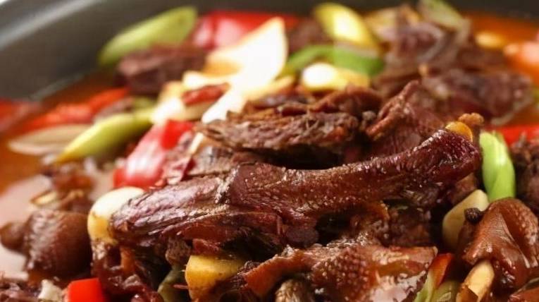 推荐理由:洪湖野鸭素以个大、肉肥、味鲜著称。红烧野鸭以青头对鸭作原料为佳。将整理后的全鸭切成四十小块,入锅炸干血水,脱生后取出入另锅,投入姜、蒜、酱油、精盐等,用清水焖烧鸭肉至八成熟,放白糖烧至能拉丝时,出锅盛盘,撒上葱花、胡椒粉即成。此菜色泽黄亮,烹调精细,讲究火功,肉质肥嫩香酥,鲜甜爽口。