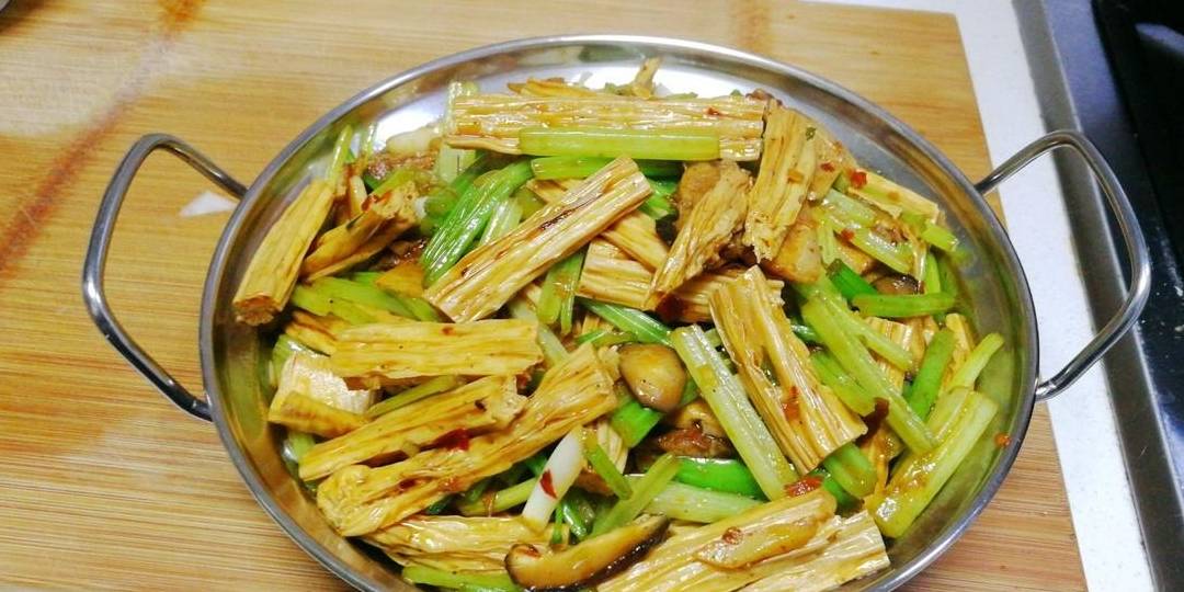 做法:准备干净的腐竹,放入温水中泡发,一般是10分钟左右,不建议用开水,如果用开水的话,很快就泡烂了。将腐竹洗干净,准备半斤的芹菜,可以是西芹,也可以是普通芹菜,切段,葱姜都准备好,蒜半头切片即可。