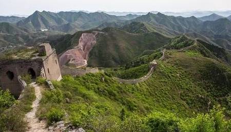 界碑西段采用灰白色石灰石作城墙和敌楼的基座,界碑以东的2100米采用紫红色大理石作为城墙和敌楼的基座,相接之处红白对峙,十分醒目,这就是万里关山罕见的大理石长城。