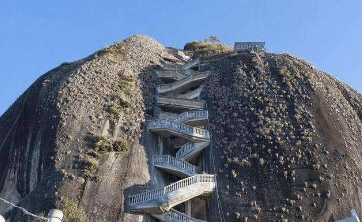 原来的楼梯是笔直向上建造的,经过加工,现在变成了曲折的形状,为游人省了很多力气。远远看去,仿佛一座巨山的伤口被缝了几针。虽然爬楼梯很累,但是登顶之后,你会发现这里的景色一绝。