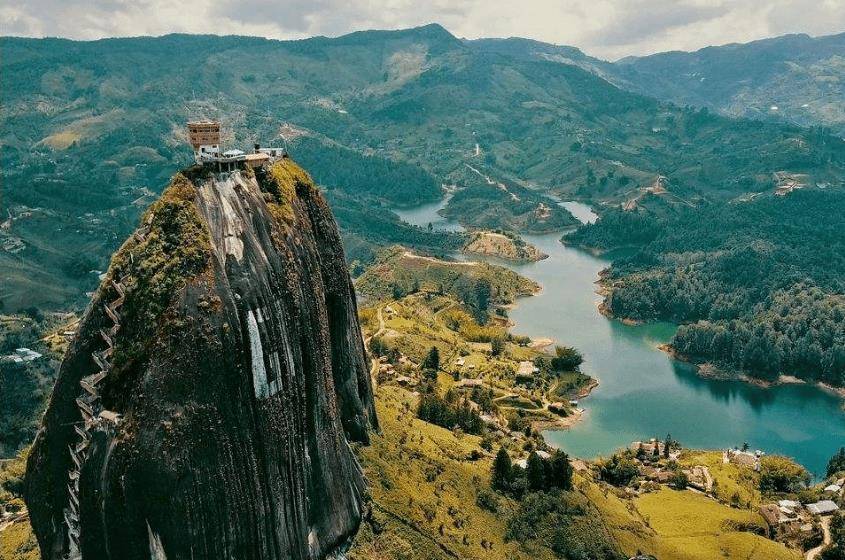 今天要给大家介绍的是西班牙瓜塔佩的房子。我们所知道的房子都是建在平原上的,但这所房子却很不一样。它建在一块重达10吨的巨大岩石上,站在远处,一眼就能看到黑色巨大岩石上的一座小房子。其实房子的主人说,他建的时候并没有想太多。他刚刚开始修理它,以便他醒来时可以俯瞰Guatapé的全景。