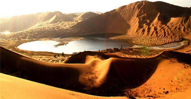 如果你有幸到过巴丹吉林沙漠腹地的必鲁图沙峰,如果你有幸登上顶峰,你会看到方圆数公里内有六个湖泊,就像六个湖泊被掩埋了一样在沙漠深处。一颗璀璨的珍珠,在阳光的照射下显得格外美丽。这些湖泊和沙漠组成了这个神秘的地方,形成了完整的生态链,养育了相当多的牧民。