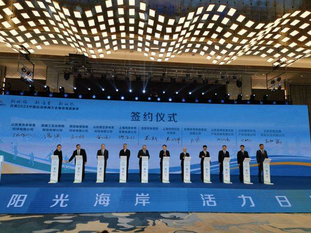 会上,山东省体育局、全国体育学校联合会和日照市政府签署了战略合作协议。日照市体育局与上海市闵行区体育局,以及相关企业之间签订了合作协议。还举办了赠书仪式。