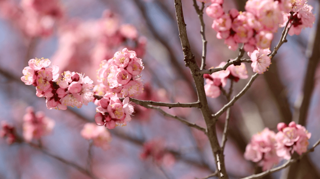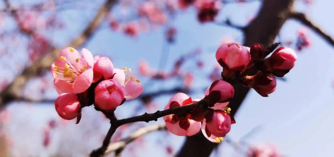 蓝天、白云、微风衬着梅花愈发得魅力四射。快来一起赏梅吧!