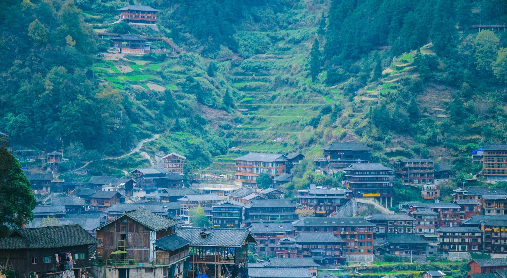 新桥苗寨依山而建。从这里的建筑可以看出这是一个历史悠久的古村落。