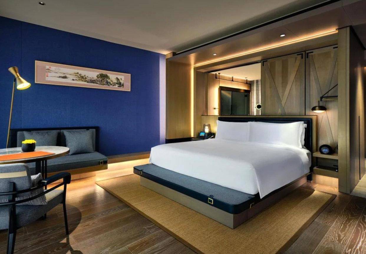 夜景散发着无尽的光彩,从图片上就可以看出它的壮丽。上海佘山世茂洲际酒店不仅地理位置抢眼,内部装修也极具内涵。房间内部采用原木打造,给人一种亲近自然的感觉。