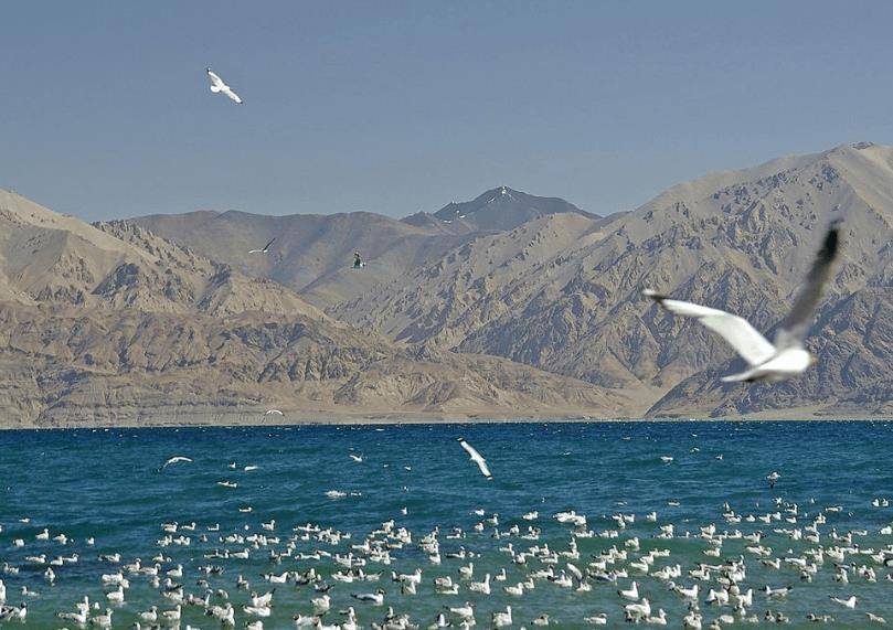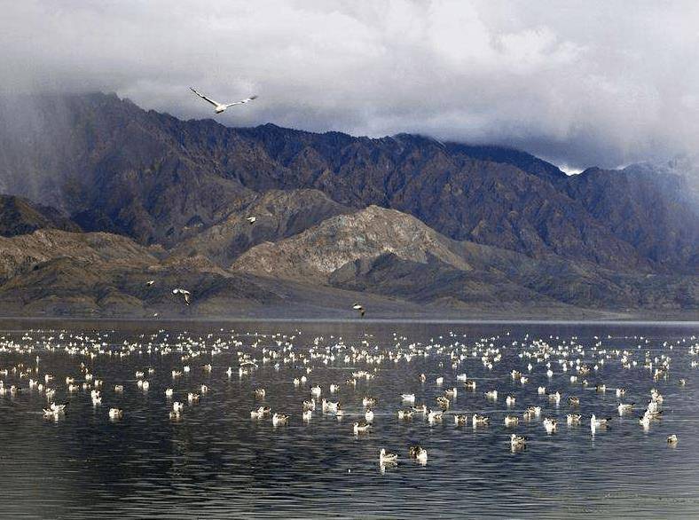 班公湖分布着大小岛屿数十个,是鸟类的天堂。岛上生活着鱼鸥、褐头鸥、斑头雁等20多种鸟类,数量可达数万只。每年的5-8月,是鸟岛最繁忙的时候,成千上万的鸟儿会在这里繁衍。
