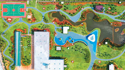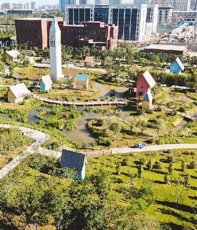 海南省海口市江东新区地埋式水质净化中心,地下是污水处理设施,地上是湿地公园。康登淋摄(人民图片)