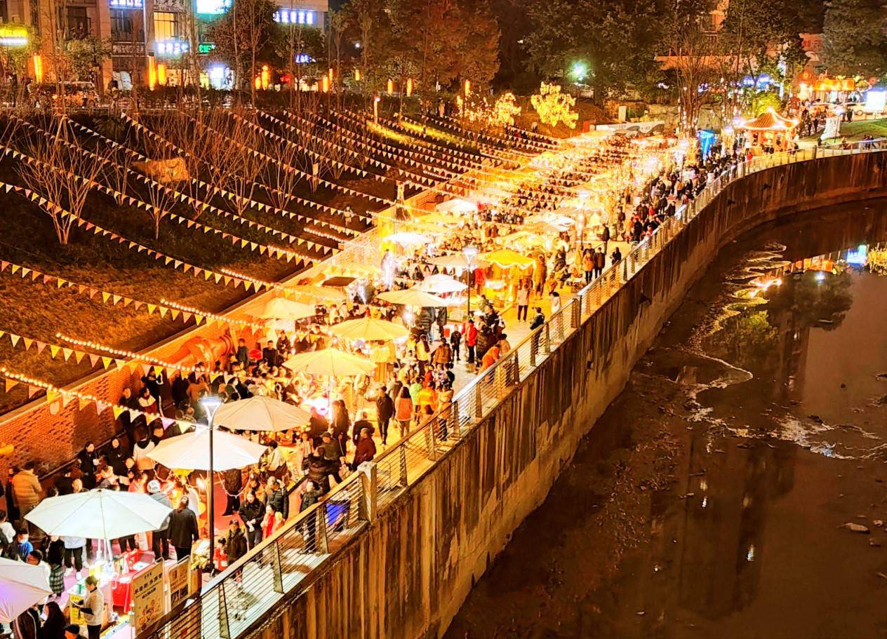 经过近年来的发展,九龙坡发挥国家级夜间文化和旅游消费集聚区巴国城的示范带动作用,加快打造九龙滩夜间经济示范区,持续推进黄桷坪艺术集市、彩云街市、直港大道、南方花园、小花集市等消费地标提质增效,形成了“五夜”俱全、长期夜市与短期市集互补、室内活动与露天休闲贯通、商文旅体相融的夜间经济发展格局。