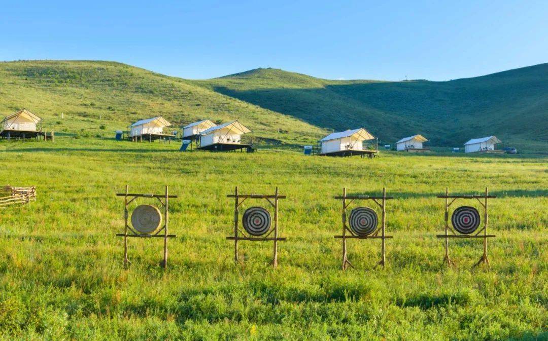 营地依山而建,将 800亩草原美景尽收眼底。白天可以骑马🐎、射箭🏹、烤全羊🍗;夜晚微风吹拂,围着篝火起舞🔥,躺卧在帐篷⛺️里,仰望群星璀璨的天空,别提多惬意!
