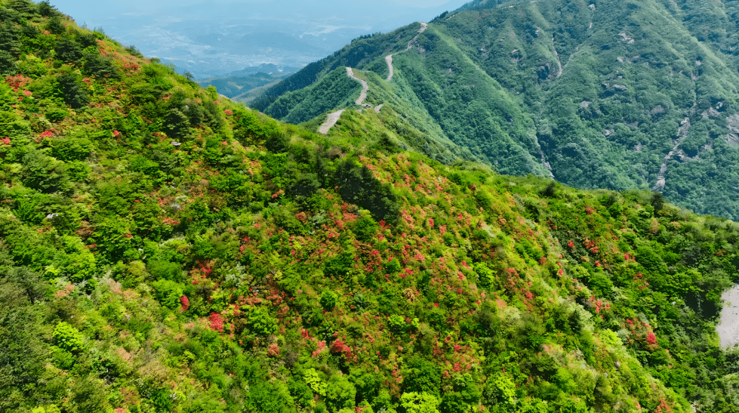 走进黄龙山的深处,云的深处,春的深处。晨雾随风朦胧,山路弯弯悠长,杜鹃花在弯弯的路旁红了,一枝枝,一簇簇,绽放在春天里,悄然开满山岗。