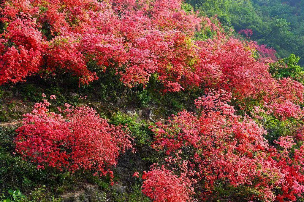 “看漫山红遍,层林尽染。”大幕山的野樱花和杜鹃花都久负盛名,每年的四月中旬到五月初为杜鹃花盛花期,人在景中走,如在画中游。正如诗句:一路山花不负侬。