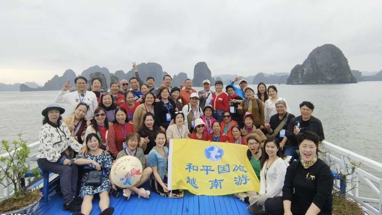 ▲ 首批出境越南游的广西游客在越南河内升龙皇城前合影 凭祥和平国旅供图