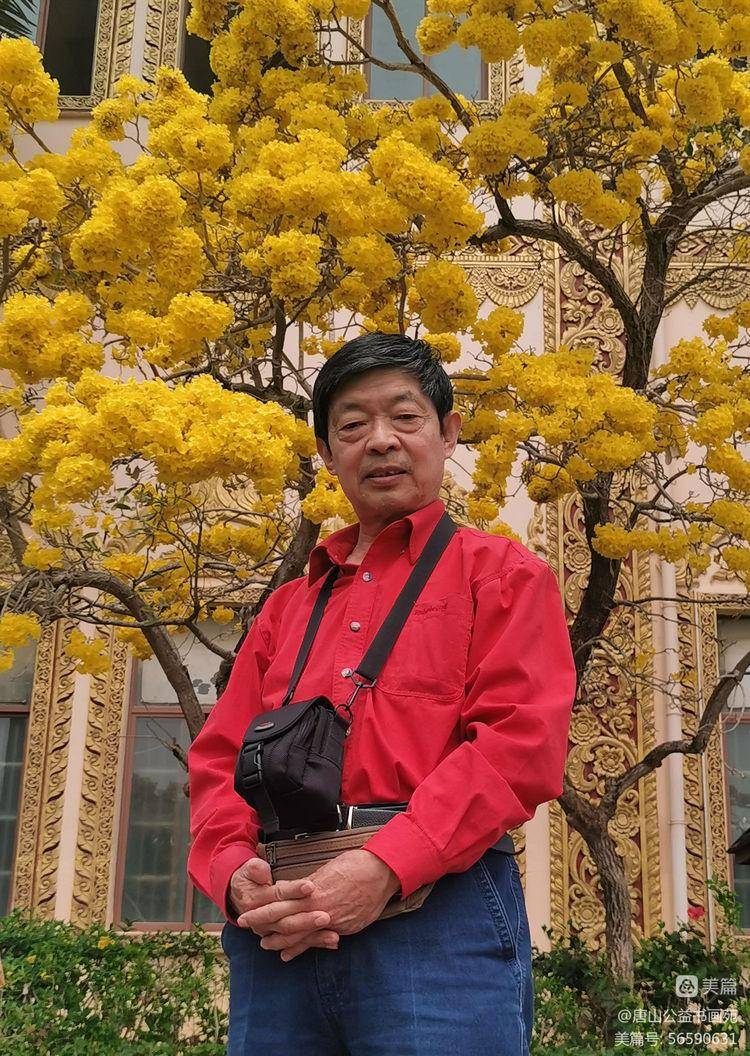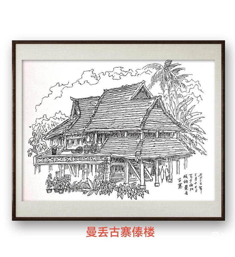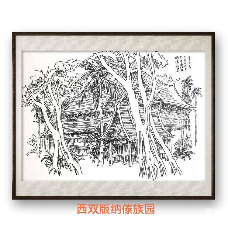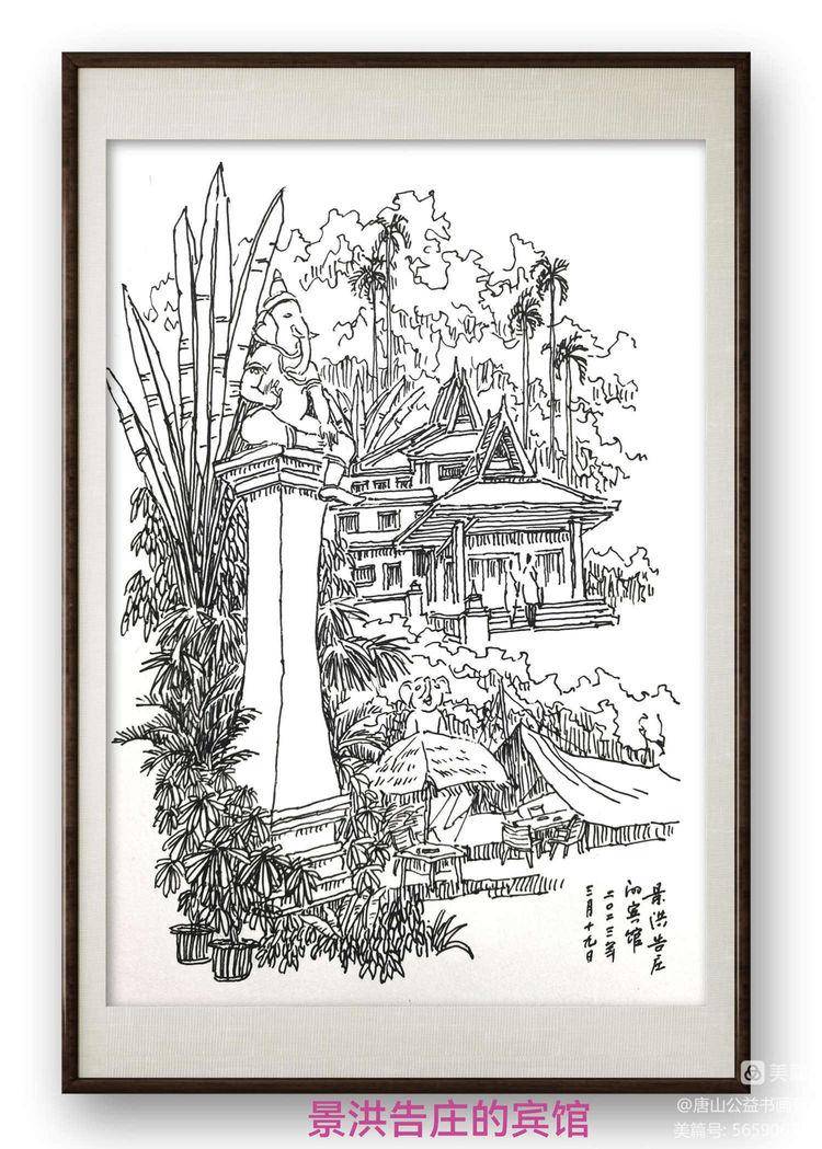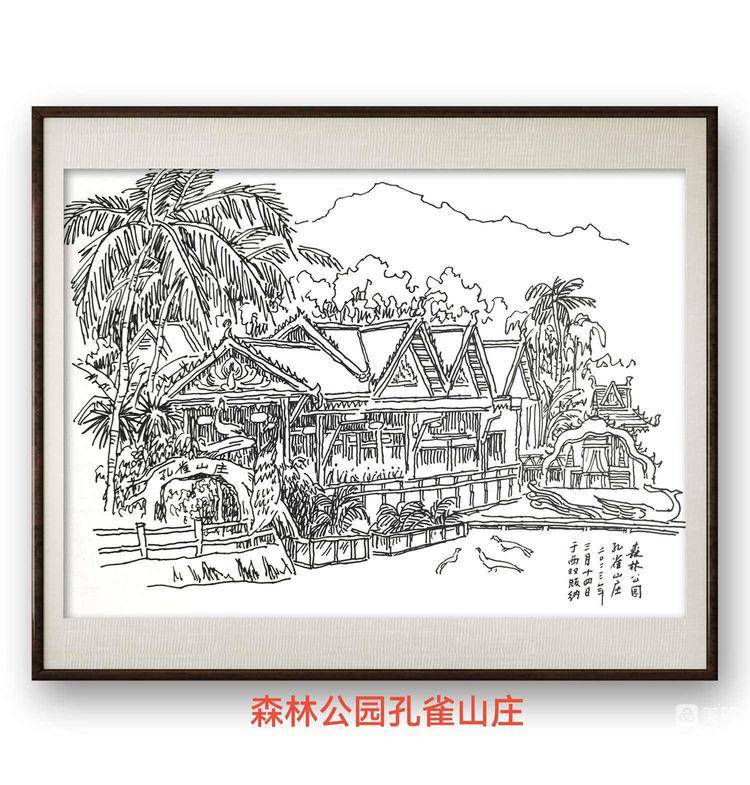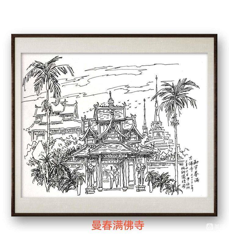 跟随先生一路前行的夫人烈日下细雨中为先生写生撑伞遮阳挡雨,夫妻俩徜徉西双版纳的迷人风光,先生用画笔记录了景色宜人森林公园、美丽的孔雀山庄、及景洪历史悠久的总佛寺金碧辉煌的大雄宝殿。