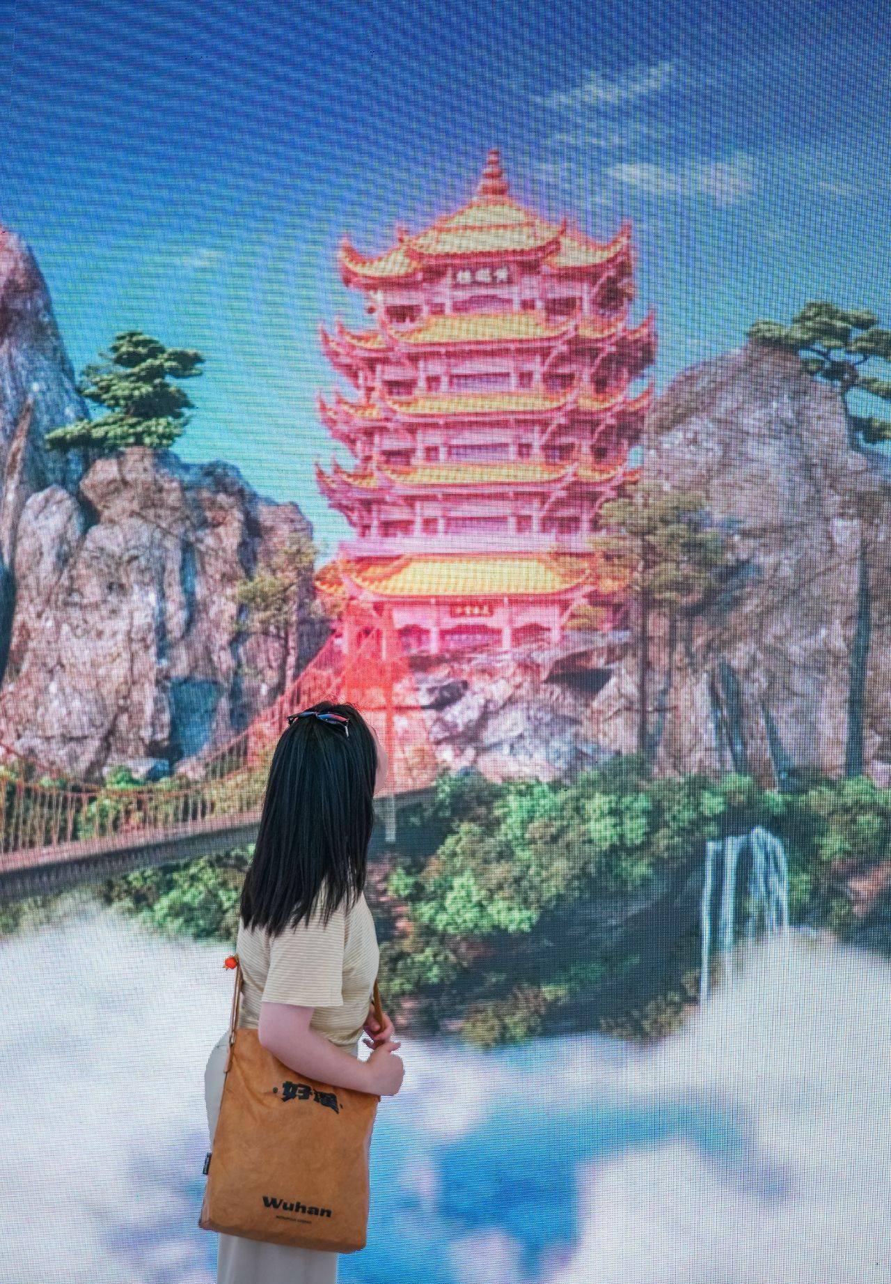 除了沉浸式打卡外,游客在武汉馆还能观看数字人叶悠悠与歌手陈文菲共唱《相见在武汉》,并有舞蹈表演等。