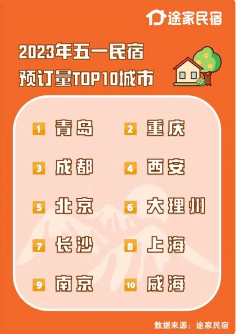 民宿酒店方面,据途家民宿数据,截至4月17日,“五一”假期民宿预定量TOP10城市为青岛、重庆、成都、西安、北京、大理州、长沙、上海、南京、威海。长沙是民宿预定量TOP7。