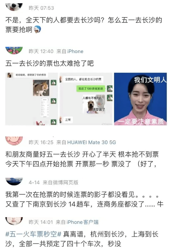 据华商报记者实测,4月15日10时30分准点查询12306APP看到,从杭州出发前往长沙、南昌等热门方向的多趟车次的车票瞬间“秒空”,10时33分,系统显示“五一”假期首日杭州前往长沙的所有火车票均已售罄。随后记者在目的地一栏输入近期热门城市“淄博”,4月29日上午杭州出发的火车票也已显示“无票”。