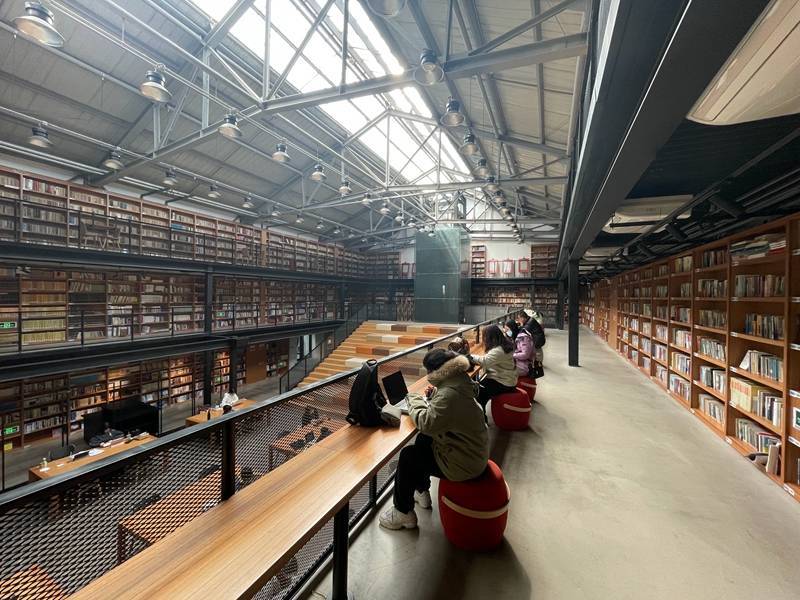 工作日的上午,走进这间2000多平方米的藏书楼,阅读区坐着不少人。这里是一间集藏书楼、公共图书馆、实体书店、咖啡店于一身的复合阅读空间。满满三层楼的藏书区,收藏了很多绝版图书,很多年代久远的藏书只供现场阅读。