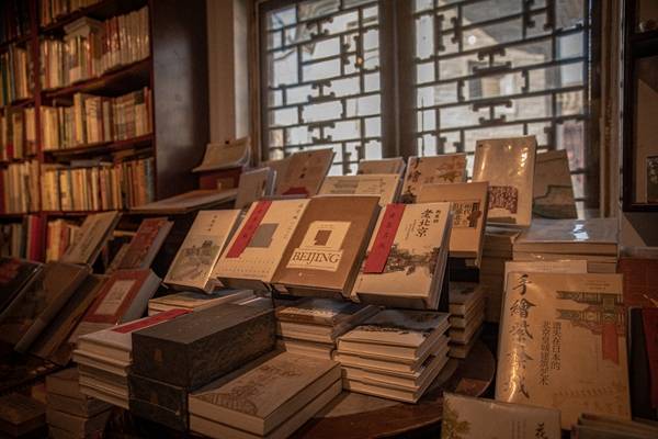 小院里收纳着很多老物件,旧门板、旧水缸、老门墩和旧书架,与古塔互为对应。正阳书局每天迎来五湖四海的游客,一些老顾客知道,在这个非营利的公共阅读场所,能找到许多已经绝版的关于老北京的书籍和历史文献。正阳书局2018年开始从单纯的书店转向出版,书店里陈列的《两代摄影师一座北京城》《银锭桥畔》等,都是关于老北京文化的主题书籍。
