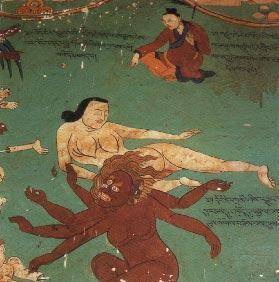 讲到这,很多人觉得西藏罗刹女就是彻头彻尾一个坏蛋,但其实她却和西藏神话中人类始祖的诞生关系密切,猕猴与罗刹女交配进而繁衍西藏人,一直以来是诸传说中流传最广和最具土著性的说法。