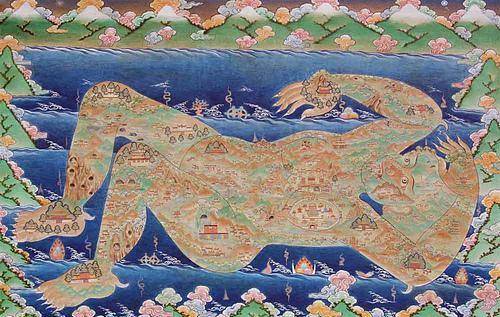 怎么施行呢?首先需要镇压她的要害之处,拉萨卧塘湖处于魔女的心脏位置,而玛波日山(布达拉宫所在的红山)、甲波日山(药王山)、帕玛日山(磨盘山)三山之地为女魔心窍脉络。