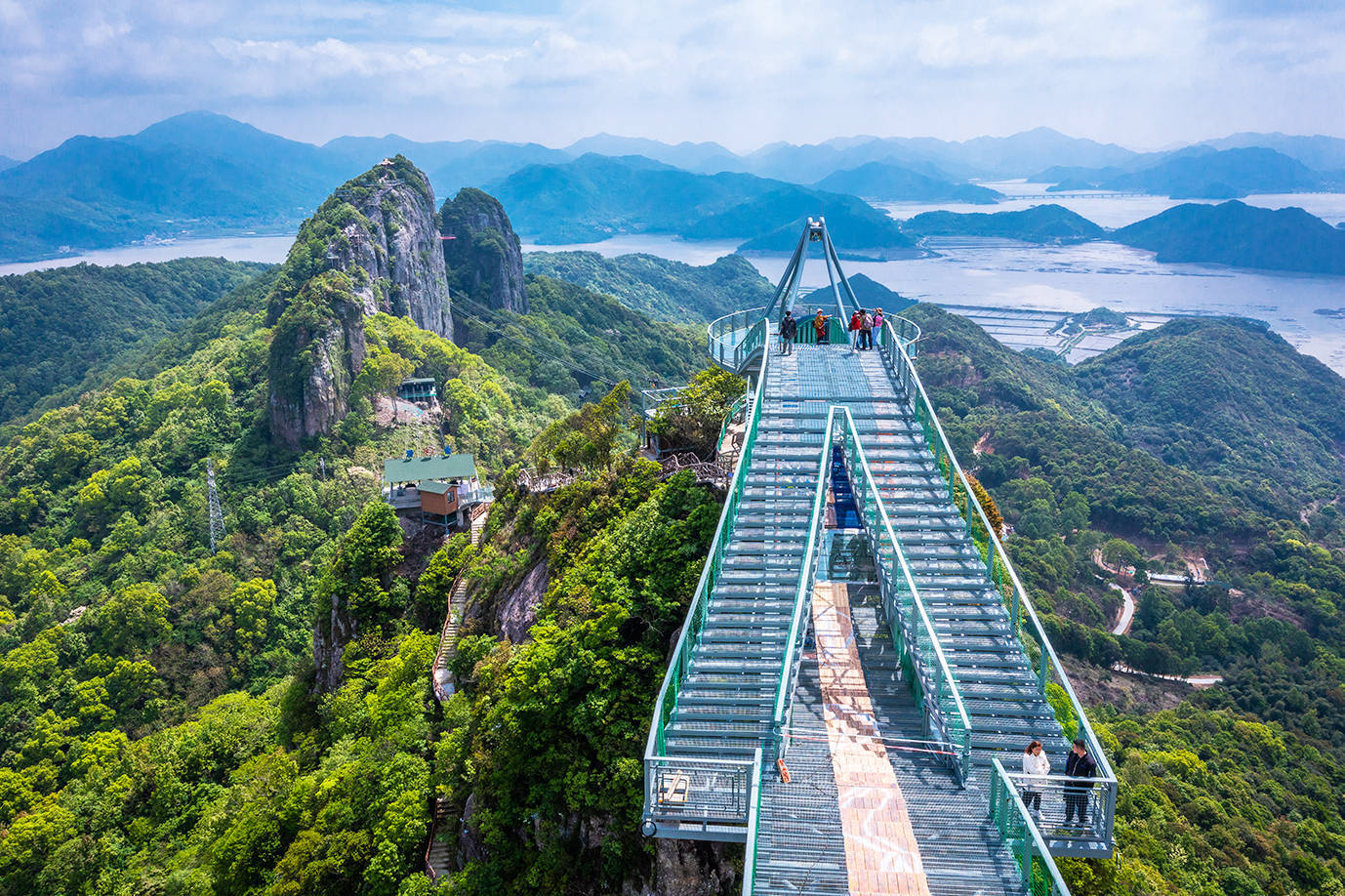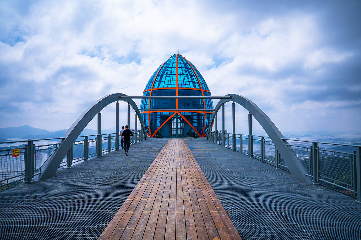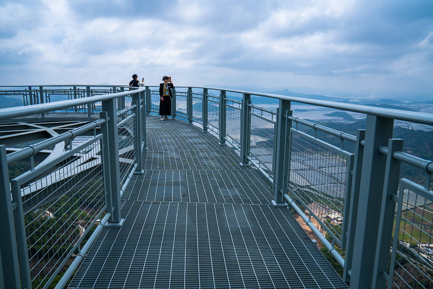 灵岩天梯的顶端是一个铁网铺设的观景平台,可俯瞰海港浩瀚美景,一览众山小。当然,走在156米的高空之上,犹如行走在天空仙境之中,不仅刺激,心中还有那么几分害怕,而这也正是高空观景平台带给人们的不同感受。