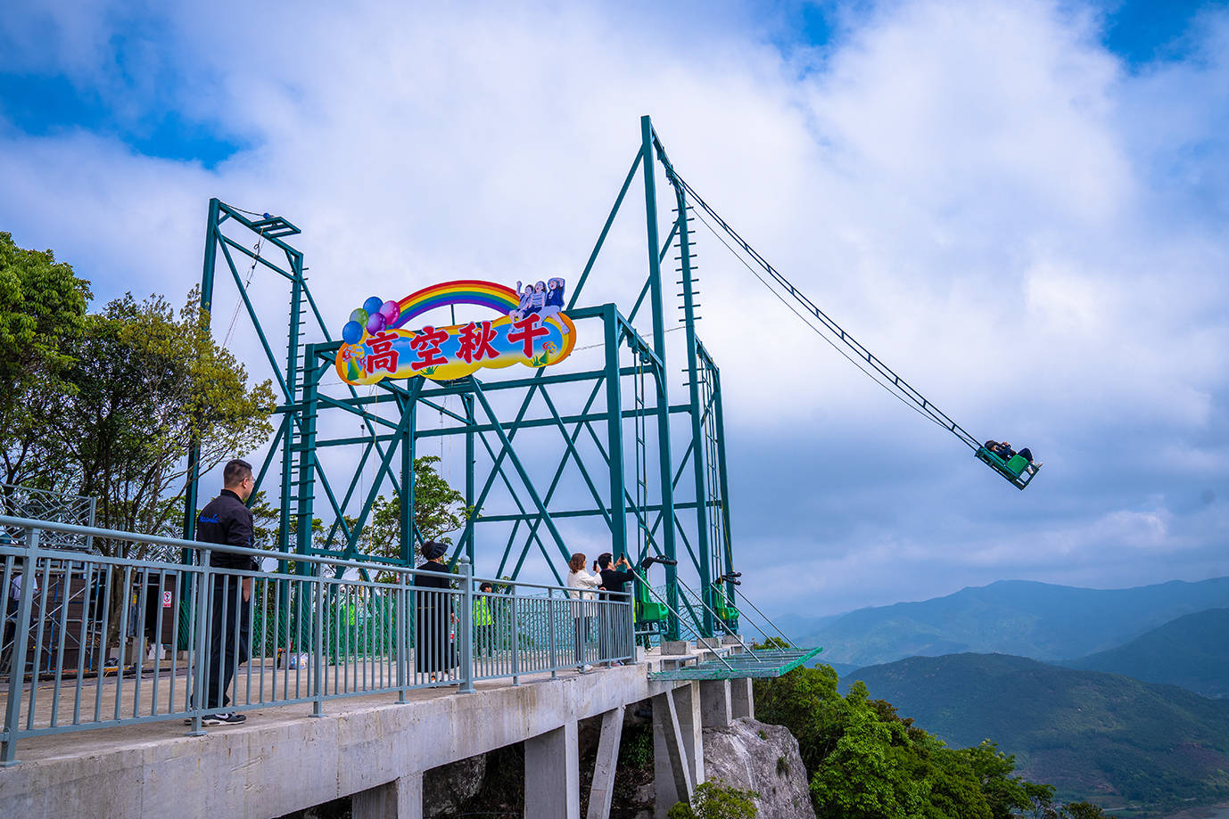 在天梯的后面是高空秋千,双脚腾空,感受回荡在天空之中的惊险刺激。微风吹拂,用不同的视角将美景尽收眼底。当然你得睁开眼,哈哈。