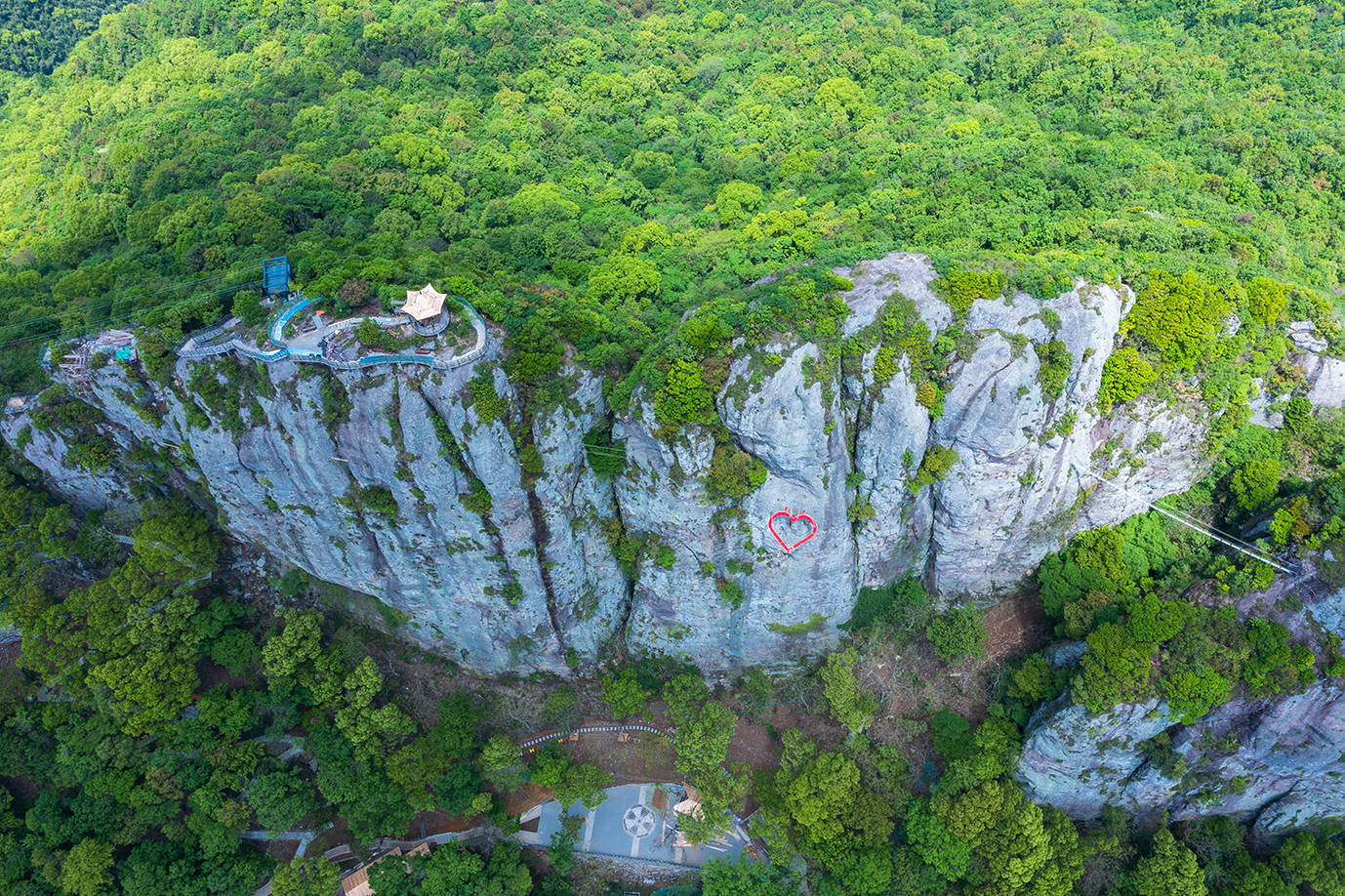 看到山体上这颗红心了吗?这就是景区内最为惊险的望海飞拉达,在笔直的山体绝壁上,由钢扶手、脚踏、生命钢缆等组成的攀登径道,是勇敢者的游戏,挑战者的动运,你是否敢尝试一下呢?如果你够专业,够胆大,还可以来一次绝壁攀岩,据说极少有人成功,难度巨大哦。
