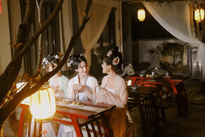 4月24日晚,正值余杭百丈杜鹃花节暨花中宋韵主题活动月举办期间,余杭百丈鑫藏修书屋的“曲水流觞”古风雅集活动吸引了众多古风爱好者打卡,身着各式汉服的女孩子们,娉娉婷婷,袅娜婉约。以古风宋韵为主题搭建的场景,只听流水潺潺,悠远的古筝与虫吟相互应和,令人心神俱醉。造型精致讲究的各式小食,在袅袅轻烟下更显治愈,一口绵密跨越千年,古代的闲雅之士所追求的人间至味即清欢是否就是如此呢?