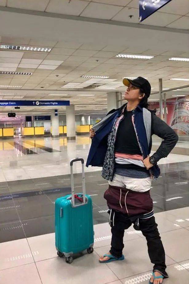 来自菲律宾的格尔罗德里格斯在乘飞机度假时就遇到了这种问题。她的行李重达9公斤,已经超过航空公司允许携带的7公斤重量,工作人员告诉她将会被收取超额的费用。然而,格尔拒绝支付这笔费用,她似乎找到了一个相当奇怪的解决办法,她将度假服装从箱子里拿出来,在身上穿了好几层。这样一来,她的行李就减掉了2.5公斤,从而避免了为超重行李支付额外费用。这条社交媒体帖子于2019年首次走红,随着新的旅行季到来,它再一次火了。