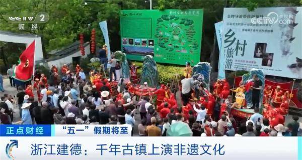 在浙江建德的千年古镇——大慈岩镇,乡村文化节正在进行,抬阁、舞狮、虾灯等十几种非遗项目吸引了众多游客。