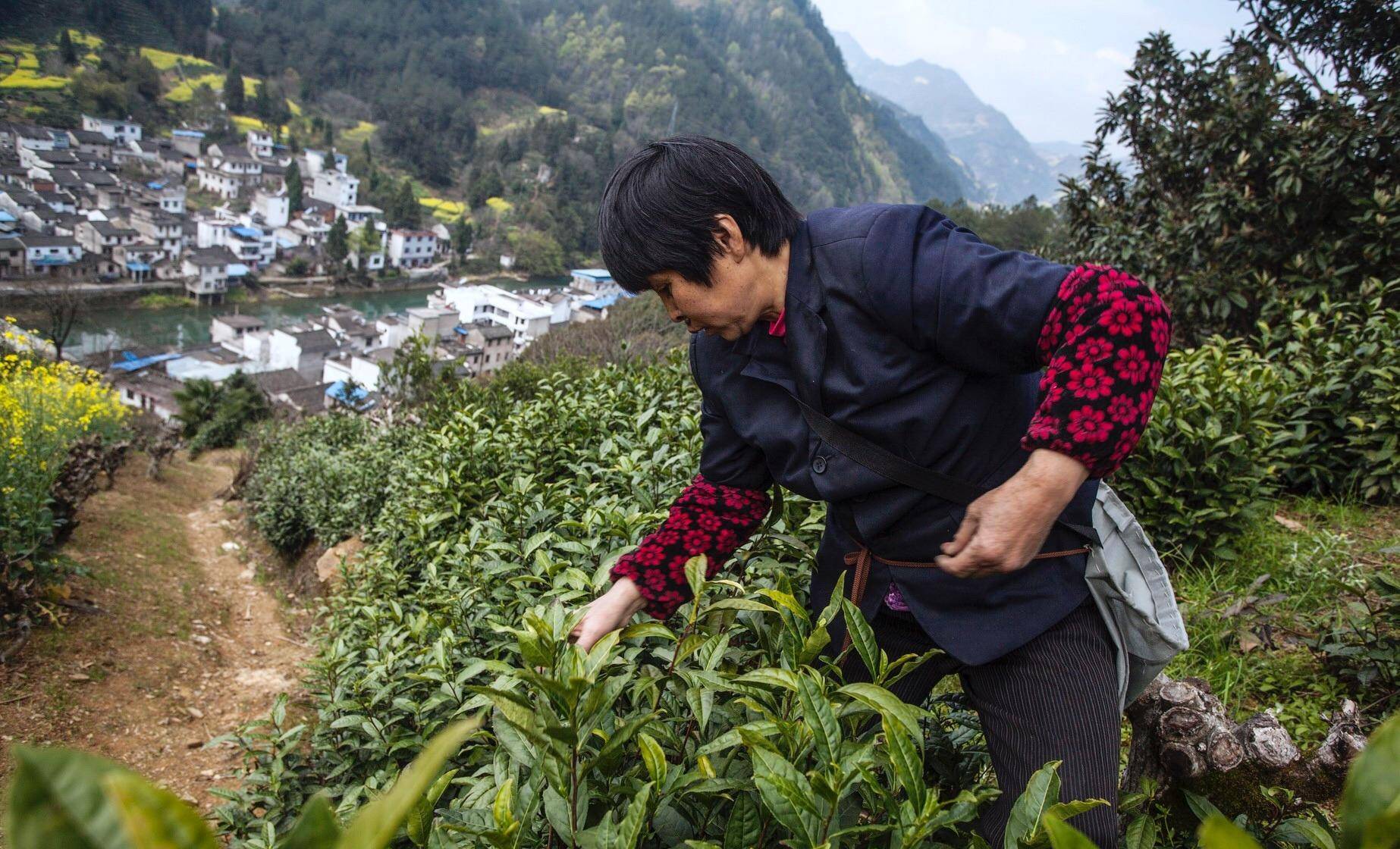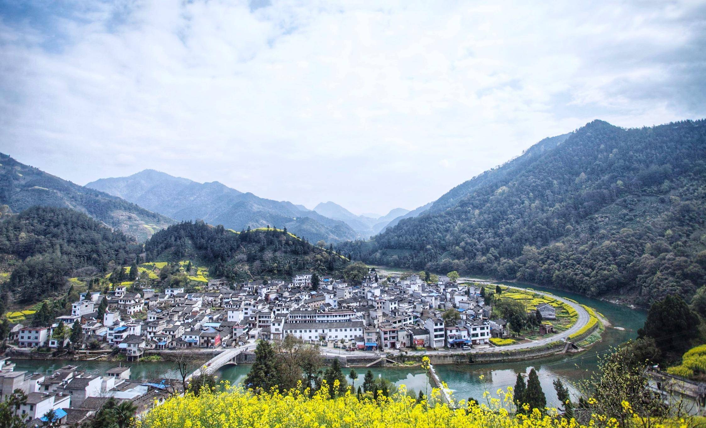 武阳小镇的山上有一大片翠绿的茶园,一位大婶正在采茶。这个时节的春茶被当地人称为“一年中最好的一批”,但比起新茶更让我为之倾倒的是眼前那美到极致的风景:碧绿的新安江在这里形成了一个漂亮的新月弯形状,江两岸是徐徐铺开的、金灿灿的油菜花;再往边上,是一排排沿江排列的、白墙灰瓦的徽派风格房舍,一座大桥连接了江的两岸,真美!