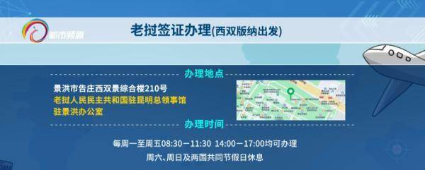 从西双版纳出发的旅客,可以前往景洪市告庄西双景综合楼210号、老挝人民民主共和国驻昆明总领事馆驻景洪办公室办理签证,工作时间为每周一至周五8:30至11:30,14:00至17:00,周六、周日及两国共同节假日休息。