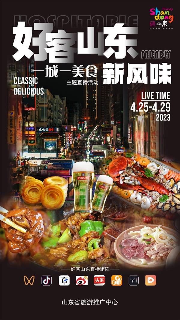 4月25日-29日,为期五天的沉浸式品鉴特色美食之旅即将开启,本次直播将由官方小编、国家高级导游员孙树伟、知名旅游达人琦娜呢、在校大学生共同探访济南、临沂、日照、青岛、聊城,沉浸式品尝临沂炒鸡、莒县羊汤、胶东海鲜等山东风味,打卡济南宽厚里、临沂沂蒙老街、青岛台东步行街,感受富有生活气息的街巷文化,邂逅超然楼绝美亮灯瞬间、奥帆情人坝最美灯光秀、临清戏剧美食文化节,享受惬意时光。透过镜头,不仅能领略当地美食,还将揭秘选材、制作、烹饪全过程,和广大网友一起“食游”山东,体验各地丰富多彩的夜间经济文化活动。