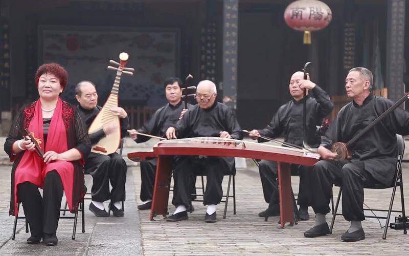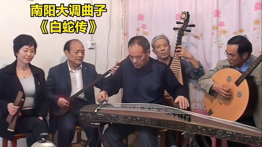 “大调曲子”从明朝、清朝、中华人民共和国建国后,从南阳传到南召的云阳南河店,特别是20世纪的50年代末到60年代初颇为流行。它的主弦乐为古筝、三弦、琵琶、二胡,道具为八角鼓,一般的演艺者为5-到7人,当时南河店的创始人有周杰,余文庆、吴琛峰、王万有、马太富、李廷山、赵洪有,他们均已病故,如果活着,都在百岁以上。随着电影大戏特别是电视的问世,大调曲即将失传,南河店村“两委”班子领导目睹现状,精心组织第二代传承人杨保太、张洪甫等人进行传帮带。从2014年着手,于2015年10月6日成立了南河店镇“大调曲协会”演艺者坚持每周二、四、六排练。不管是炎热的三伏盛夏,还是寒冷的数九寒冬,坚持不懈,特别是一到夏季,演艺者们在新街公园,老街繁华地段利用地摊演出,观众听到深夜,恋恋不舍,从此改变了农村以往赌博,惹事生非打架斗殴的恶习。