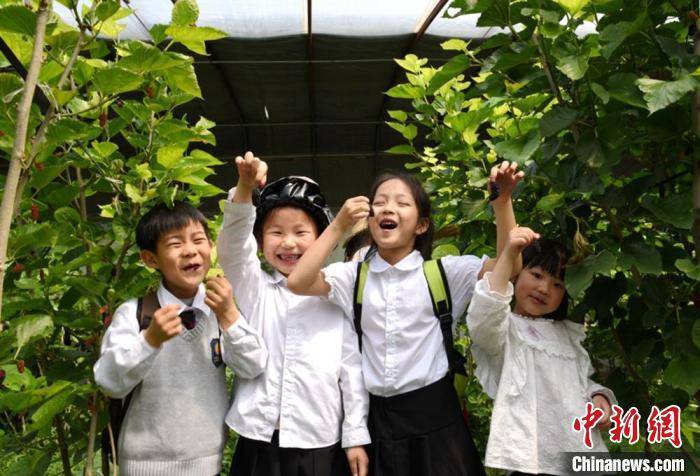 孩子们在棠张桑果园快乐地品尝新鲜桑葚。 朱志庚 摄