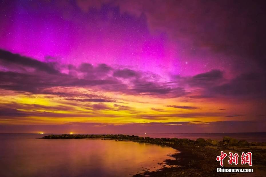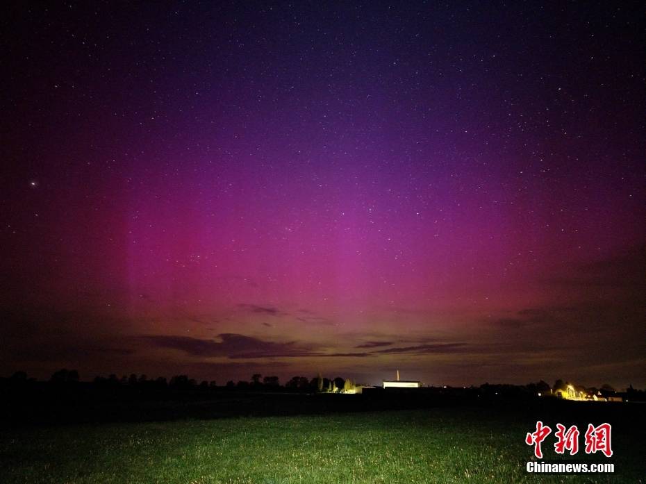 当地时间4月24日,德国萨克森-安哈尔特州夜空中出现极光景观。