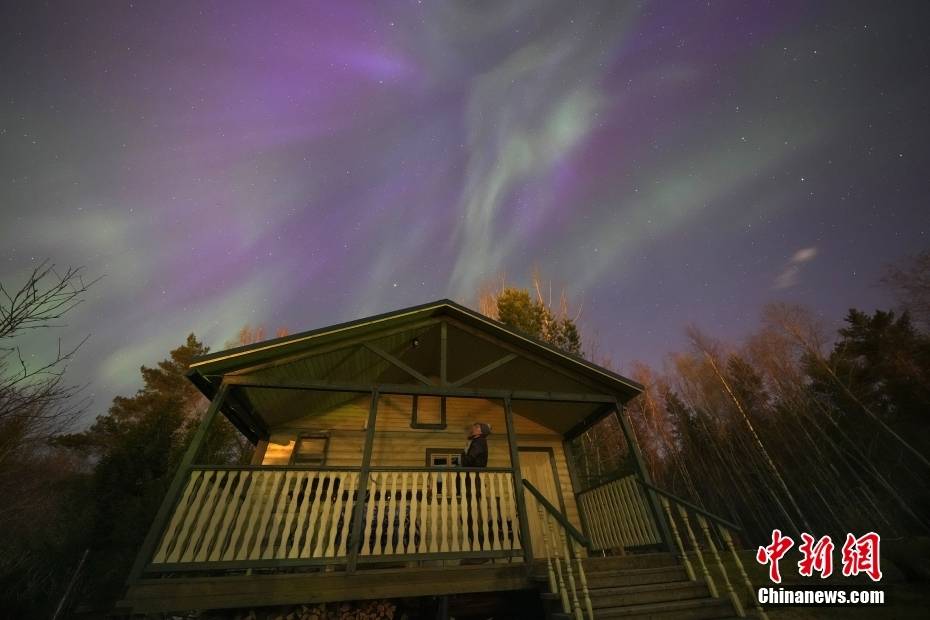 当地时间4月23日,俄罗斯圣彼得堡的夜空中出现极光景观。