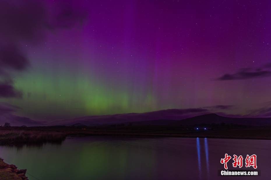 当地时间4月23日,英国坎布里亚郡的夜空出现绚烂北极光。