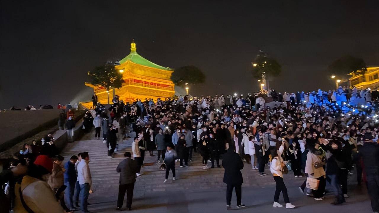 以前还只是大唐不夜城、回民街这样的地方人挤人,现在就连小雁塔、钟楼这样景点,都开启“人从众”模式。