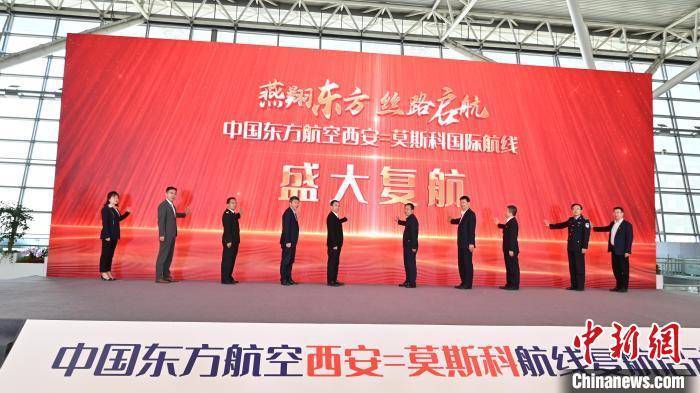 中新网西安4月25日电 (记者 阿琳娜)西安—莫斯科航线复航仪式25日在西安咸阳国际机场举行,该航线的恢复将再次连通两地友好往来的空中桥梁,为两地旅客带来便捷、高效、优质的出行体验,为两地之间的交流与合作带来更多机遇。