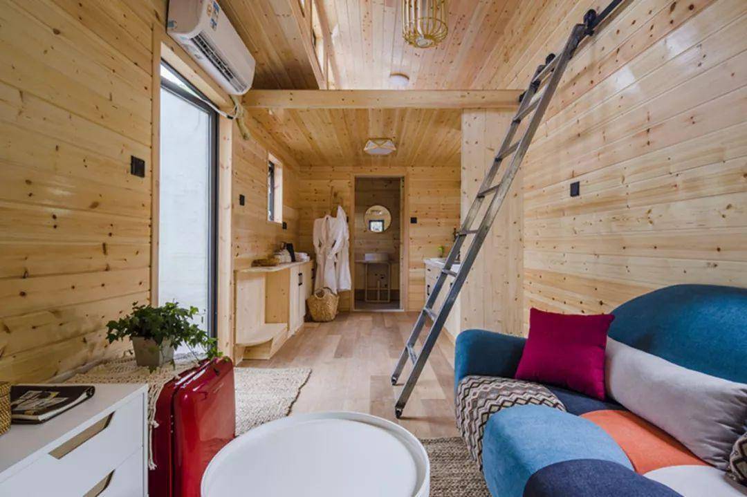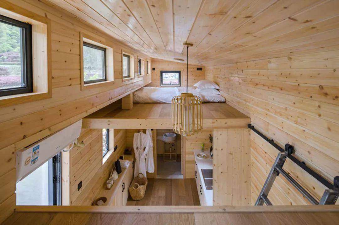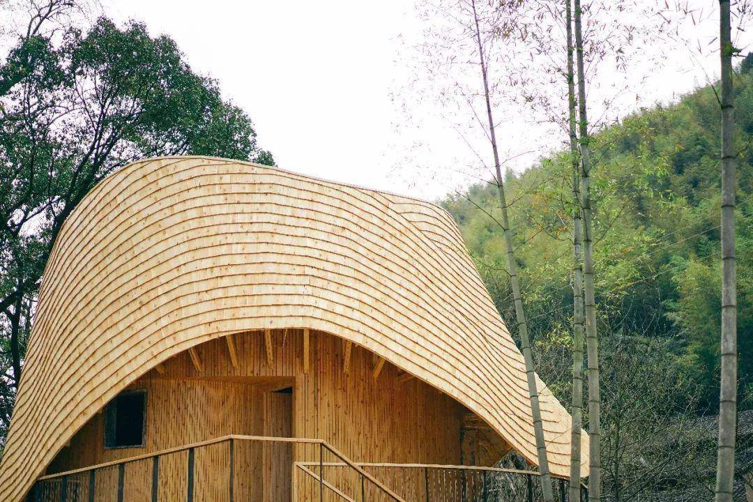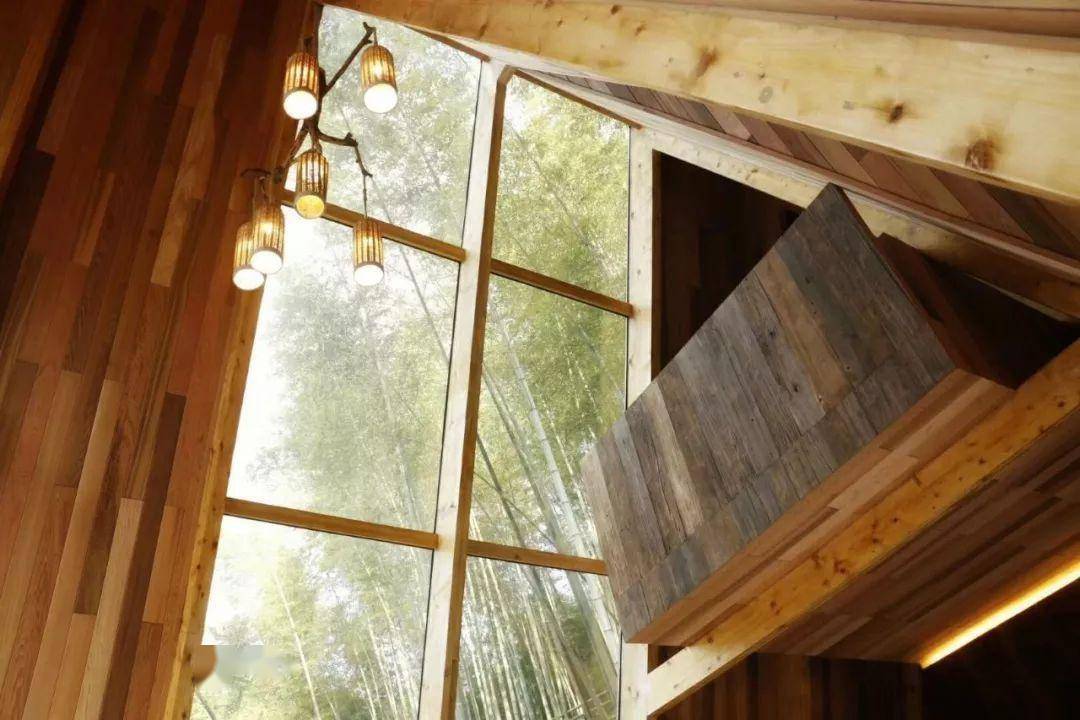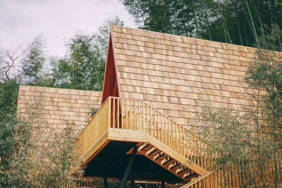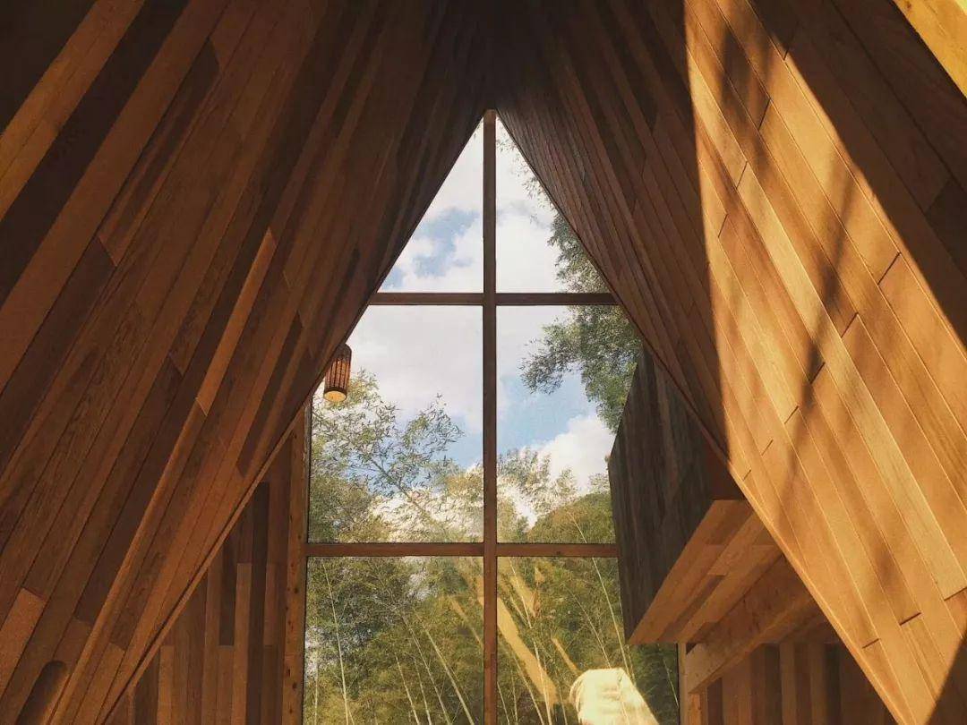 建筑的弧顶形态流畅,大老远就很引人注目。靠近细看,每一块木头的形状都是独一无二的。同时设计师根据人的动线和视线,开启了多个视觉窗户,使得在鸟巢loft中站、坐、卧、仰,可以欣赏到周遭的不同风光。