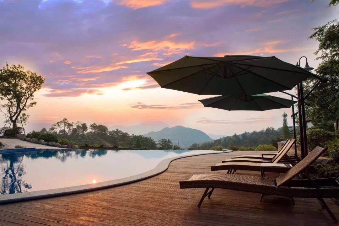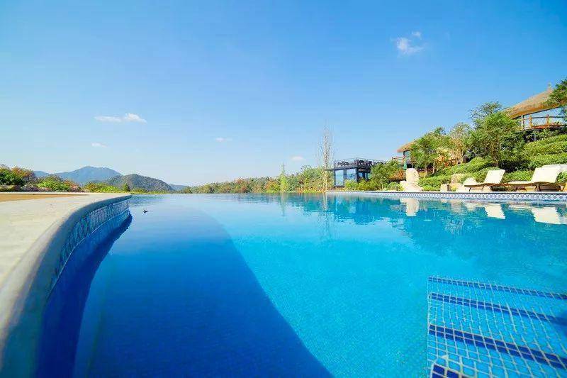 放眼望去“松篁被于山野,浓阴蔽于天日”,仿佛走进古时的山野,而一处时尚的泳池又把人拉回到了现代。