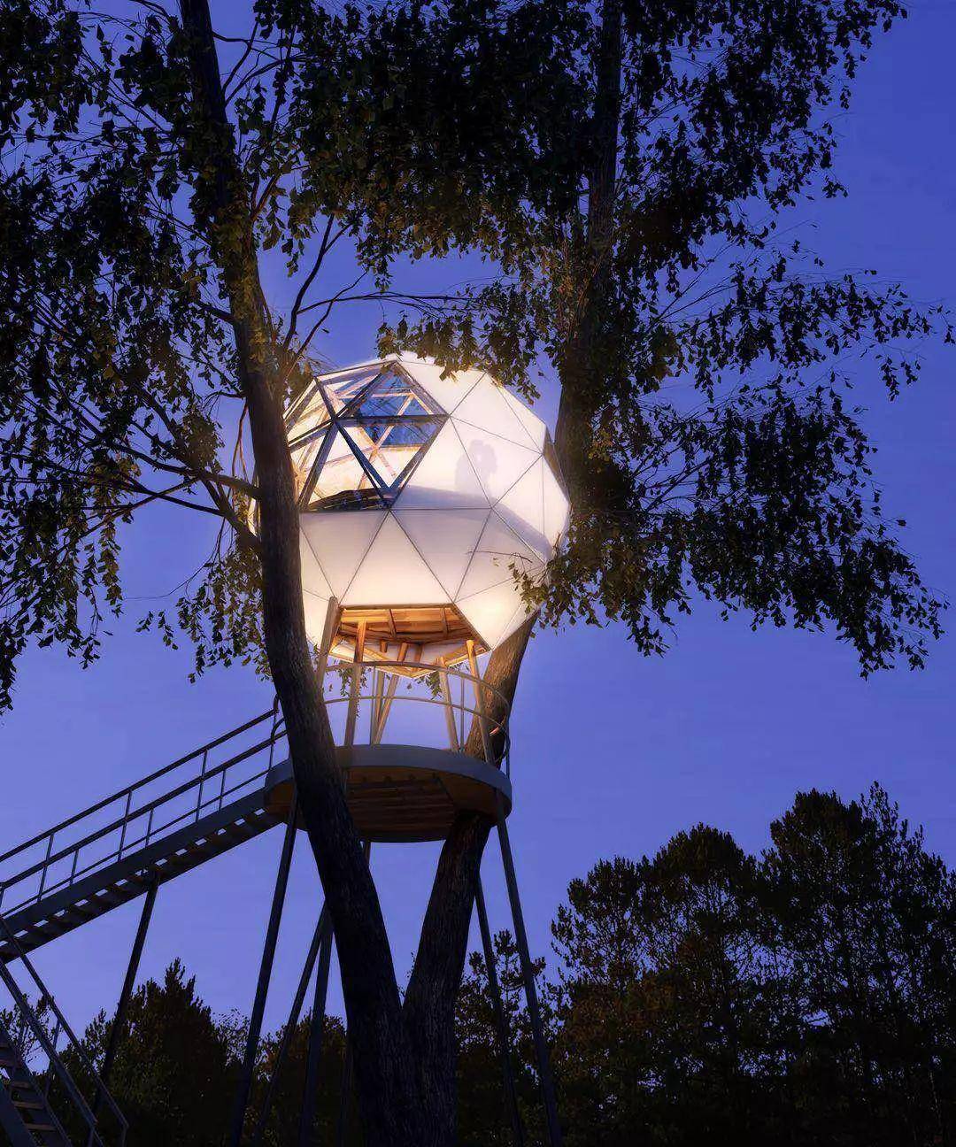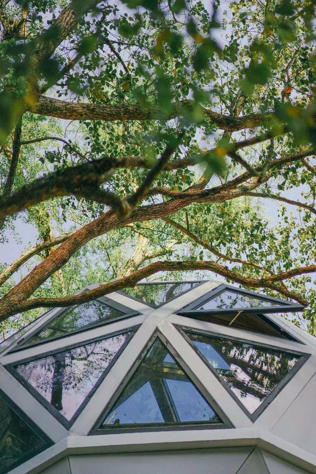 轻钢结构搭建而成的球形屋,就像是长在树上的房子,特别有野趣。夜晚的灯光一点亮,更是浪漫满屋。是一间独具特色的亲子空间。